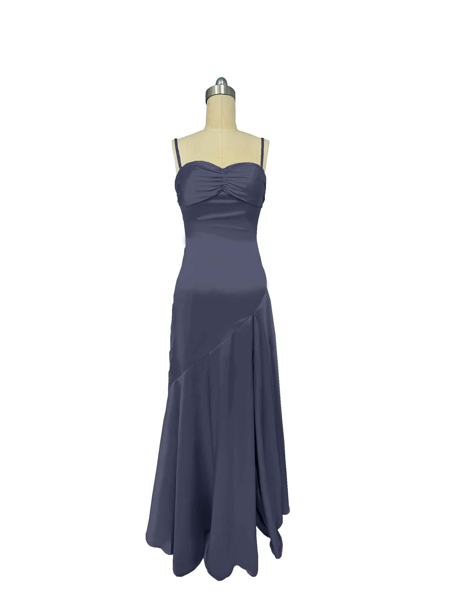 Sexy Spaghetti Straps Sheath Long Soft Satin Unique Mermaid Bridesmaid Dresses For Wedding