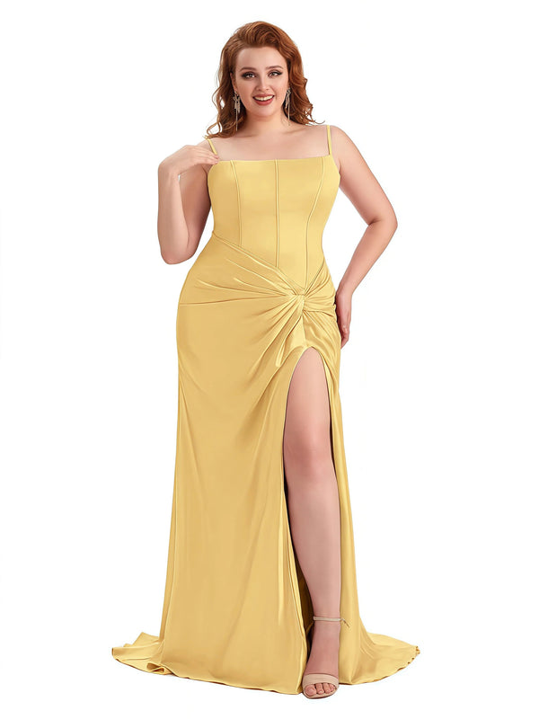 Sexy Spaghetti Straps Side Slit Mermaid Soft Satin Long Plus Size Bridesmaid Dress - ChicSew – ChicSew