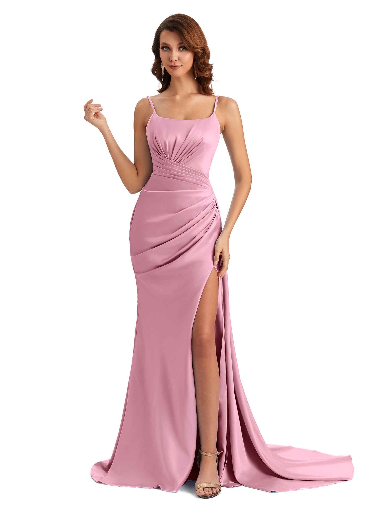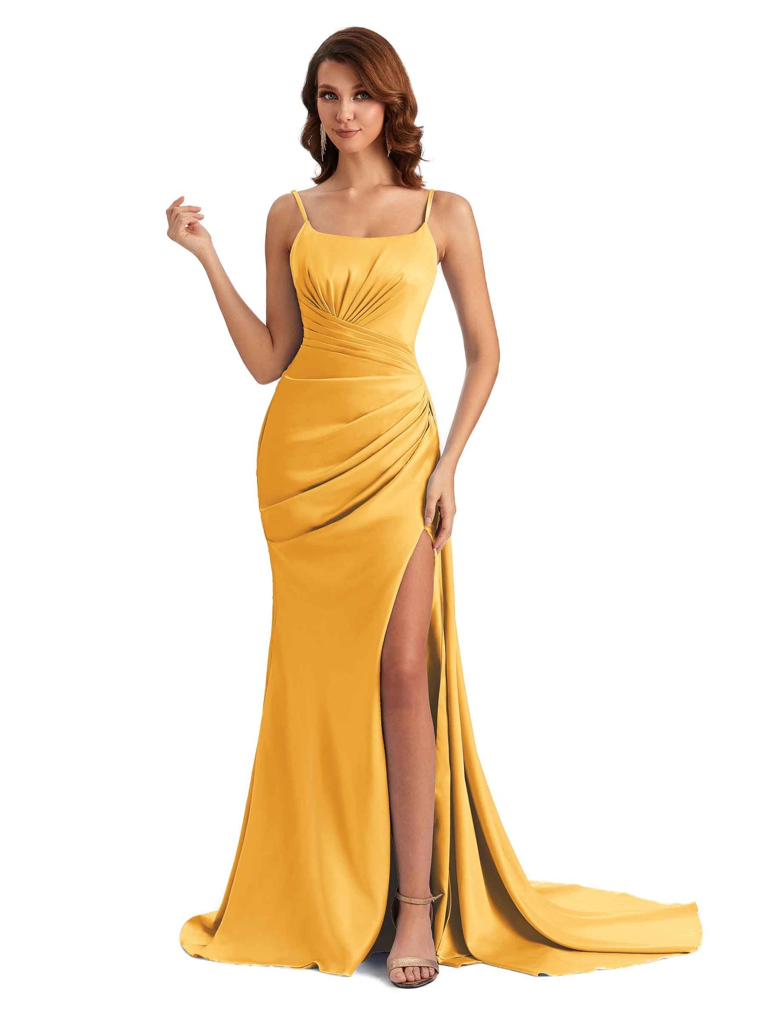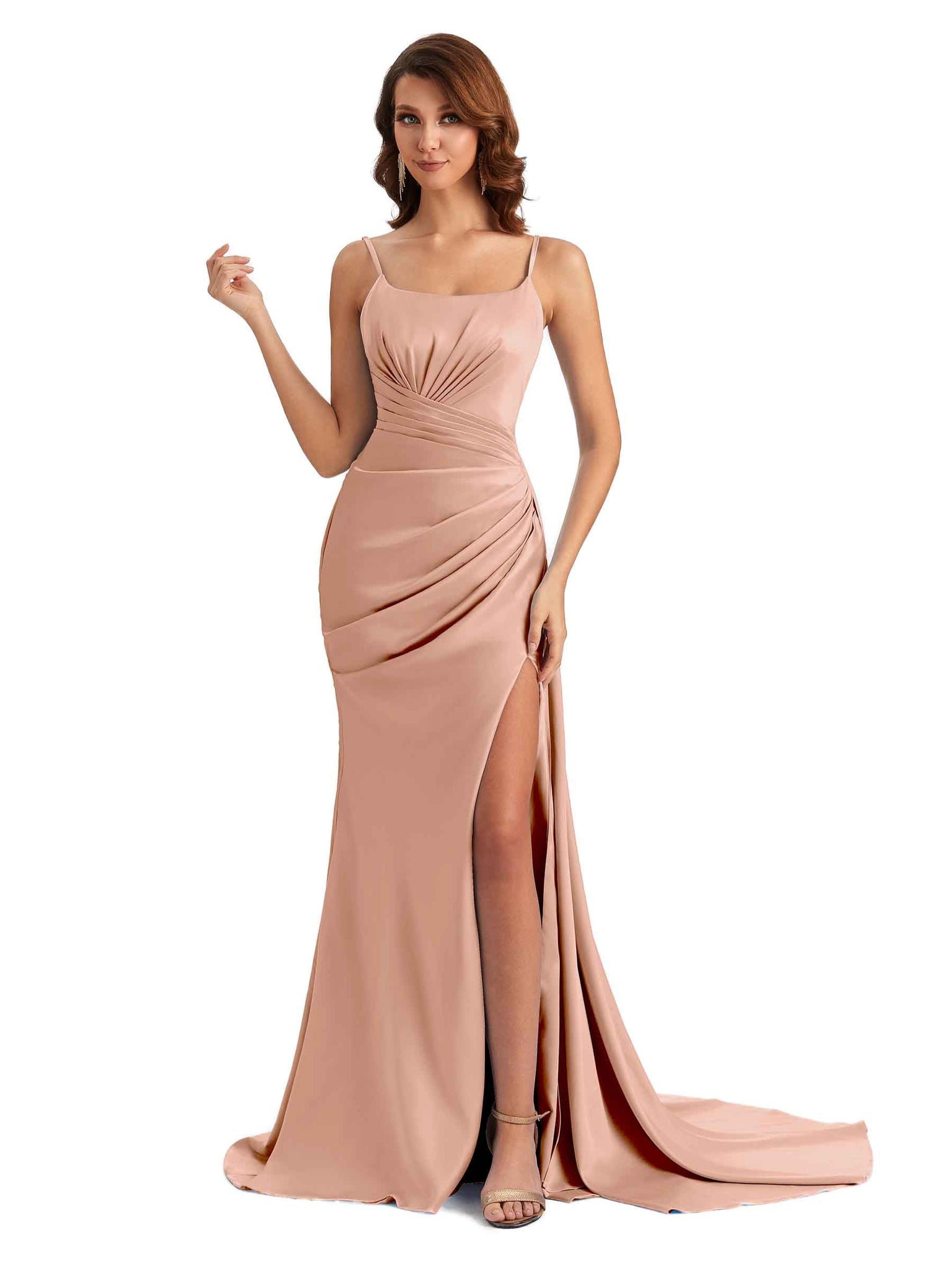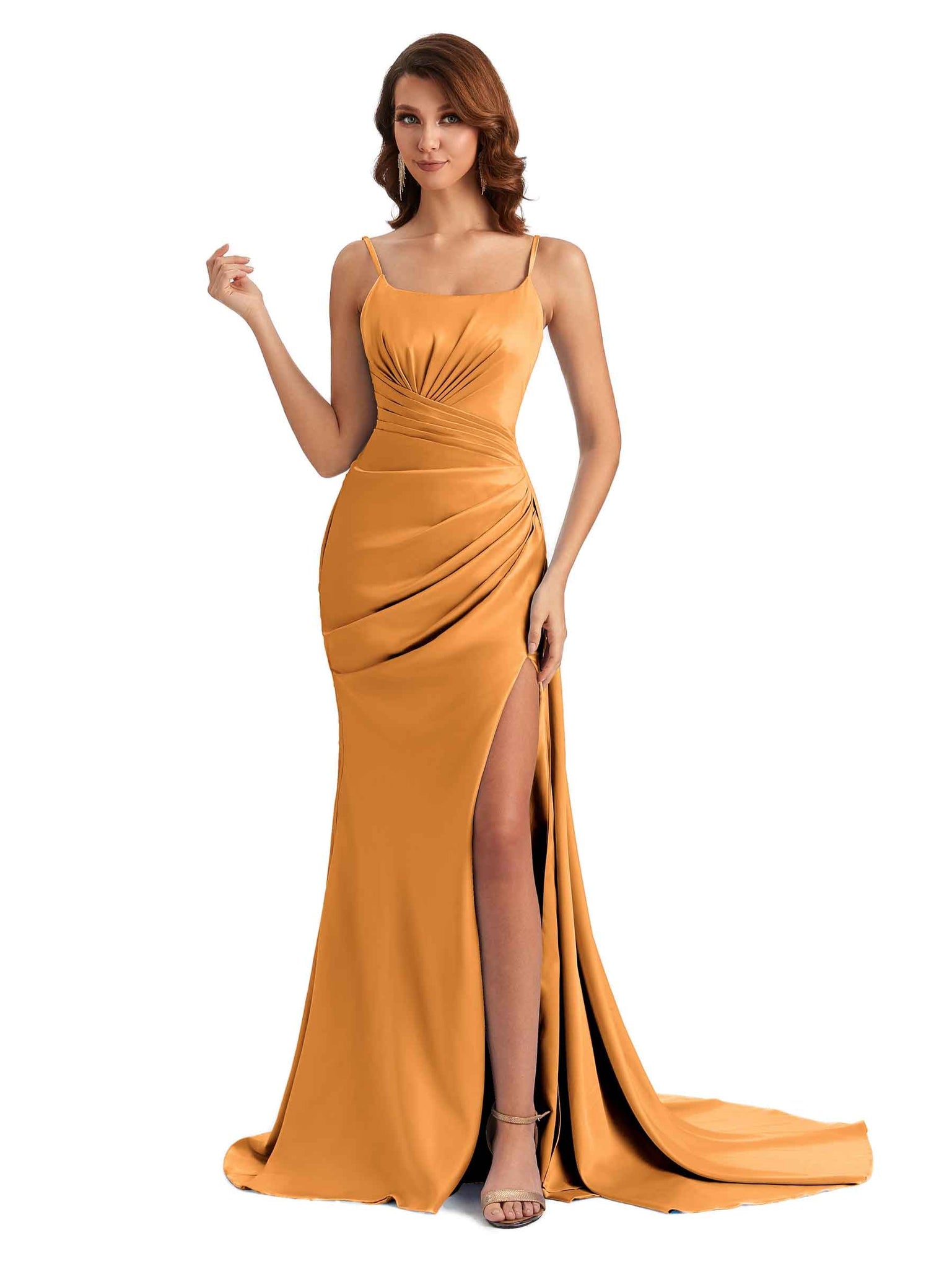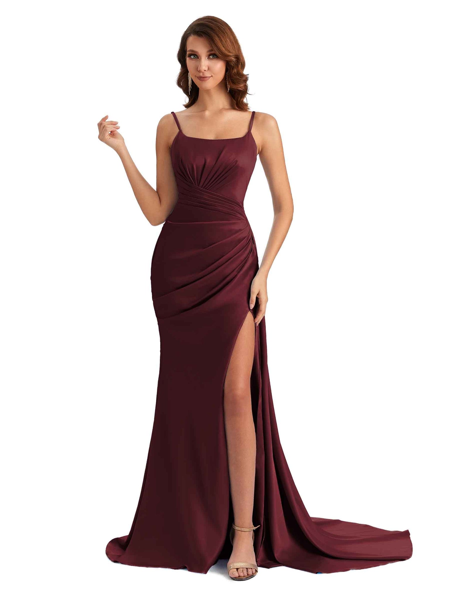 Sexy Square Mermaid Side Slit Silky Satin Chic Long Maxi Bridesmaid Dress For Wedding - ChicSew – ChicSew