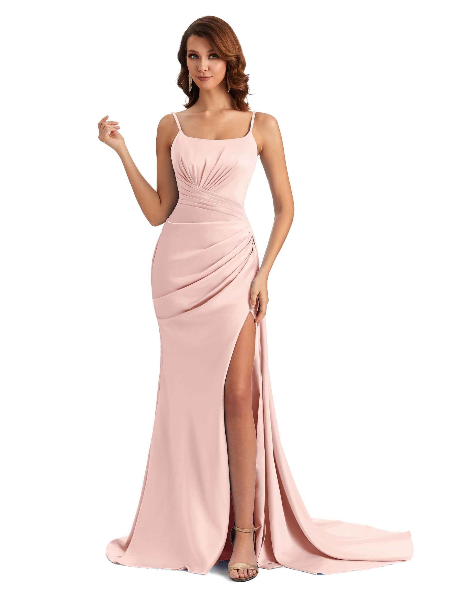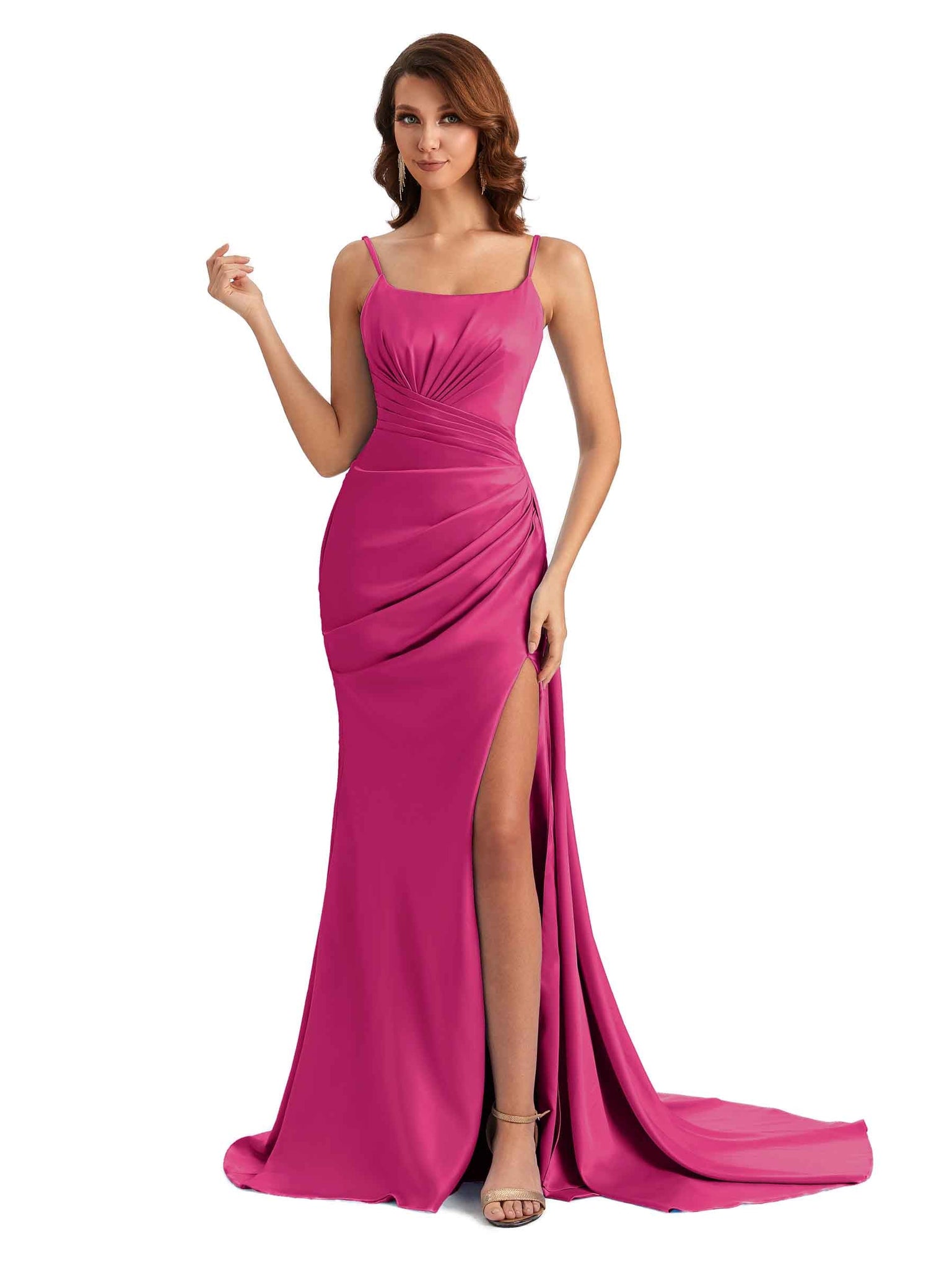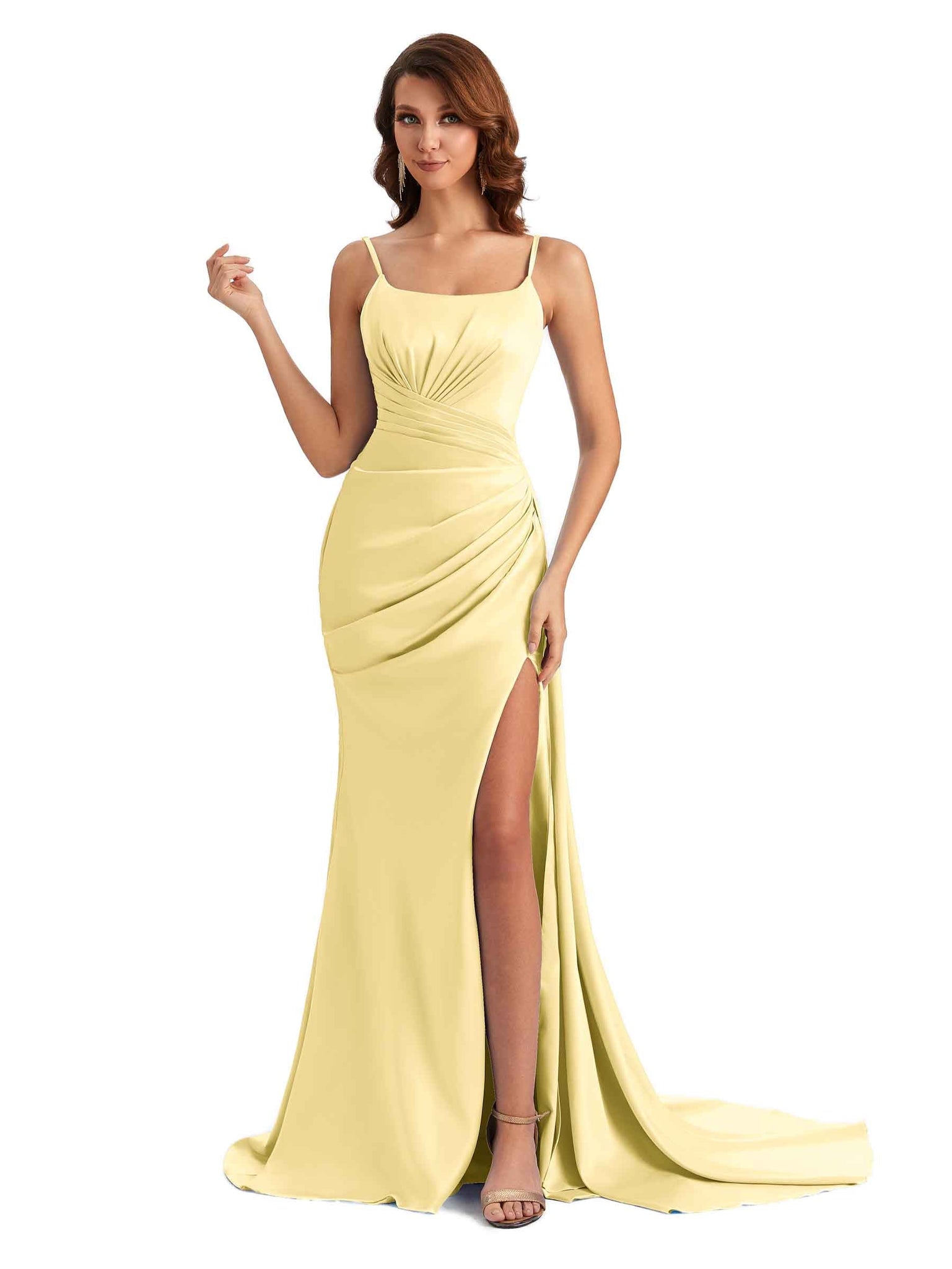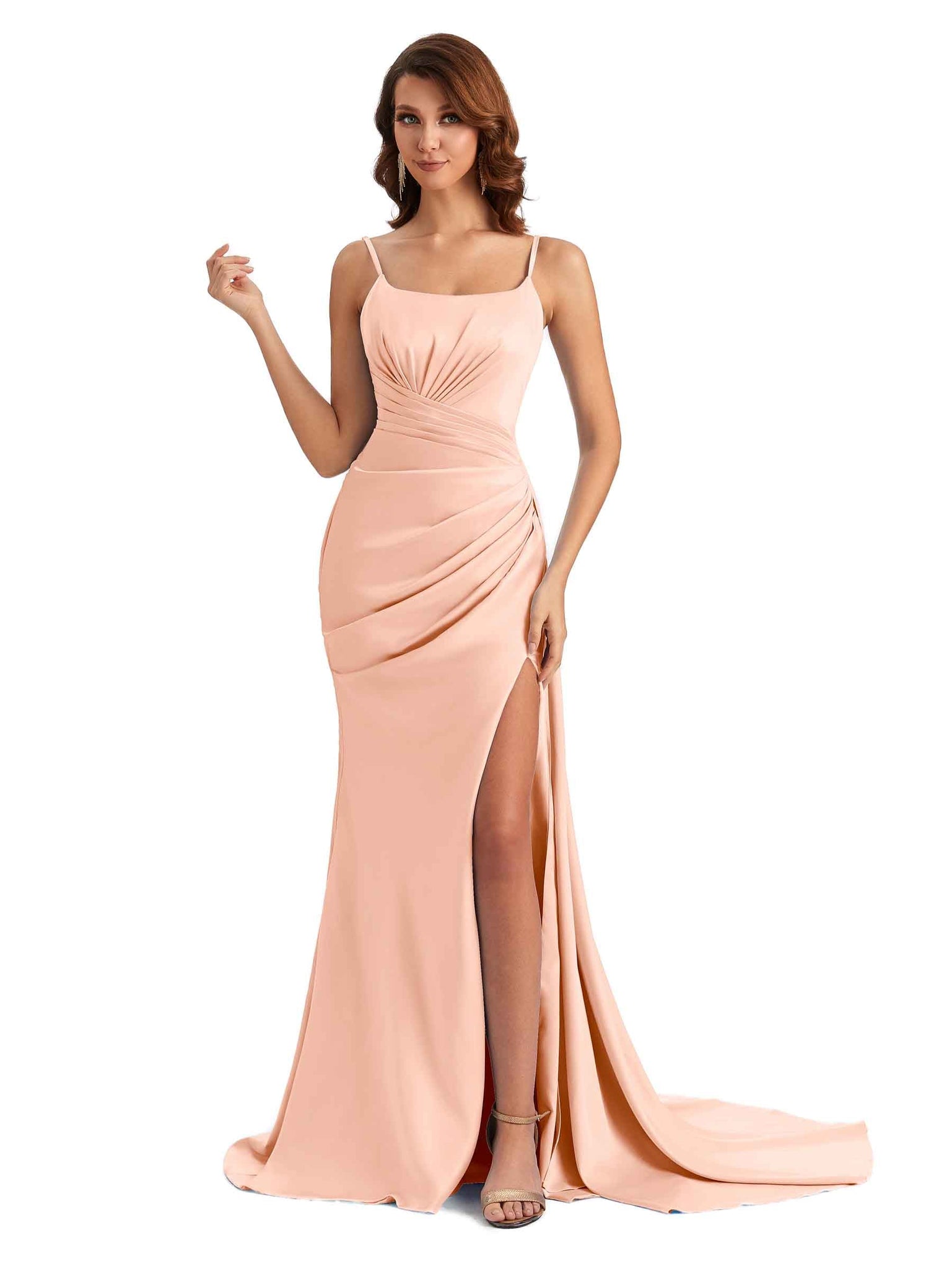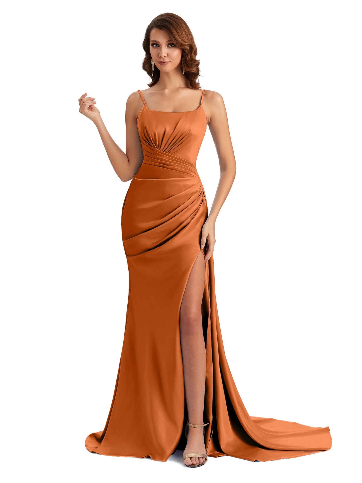 Sexy Square Mermaid Side Slit Silky Satin Chic Long Maxi Bridesmaid Dress For Wedding - ChicSew – ChicSew