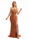 Sexy Stretchy Satin Champagne Long Bridesmaid Dresses