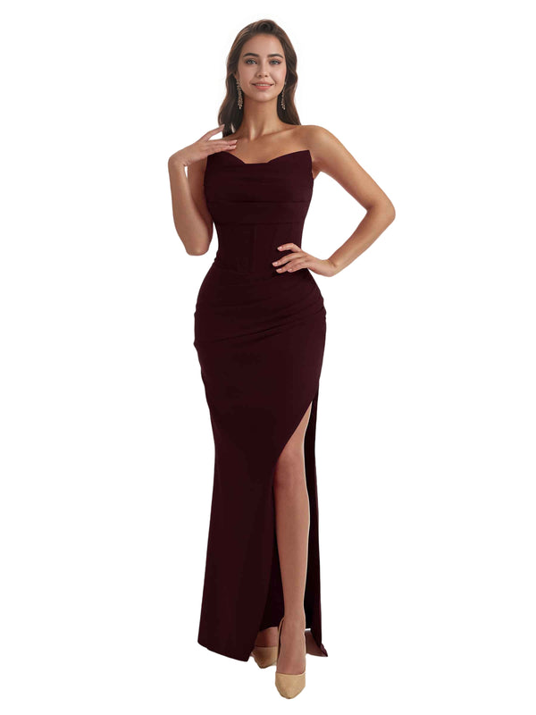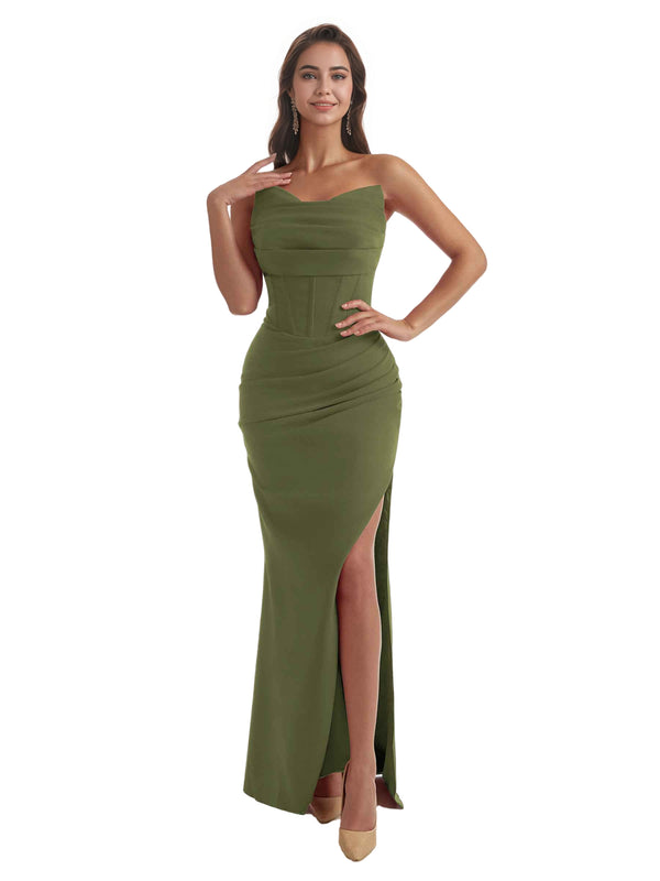 Sexy Sweetheart Mermaid Boning Side Slit Crepe Long Bridesmaid Dress For Wedding - ChicSew – ChicSew