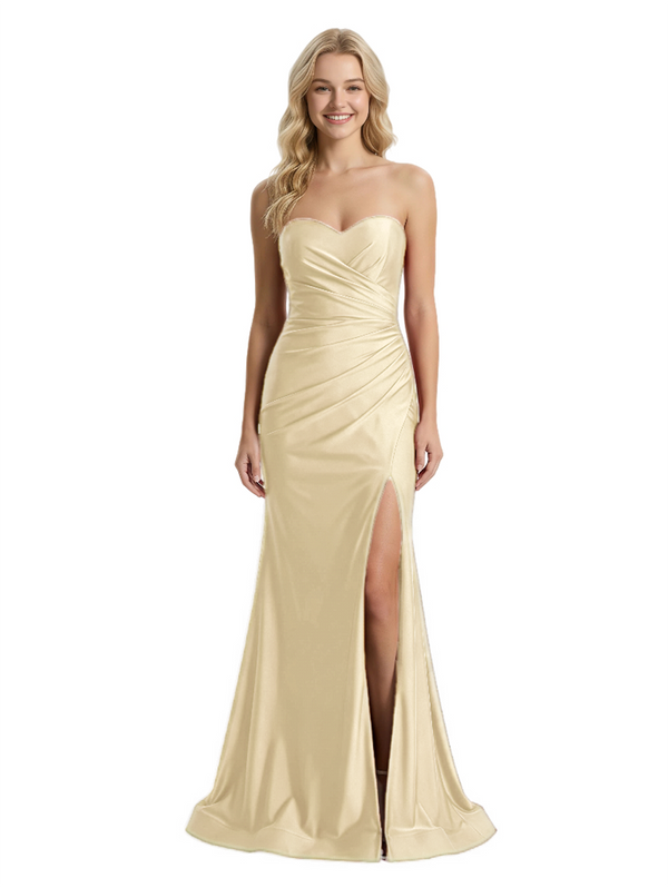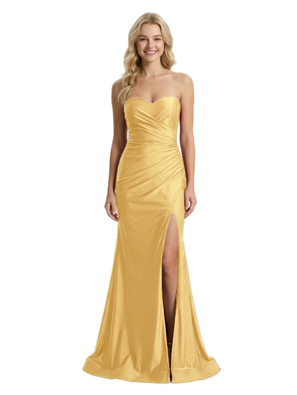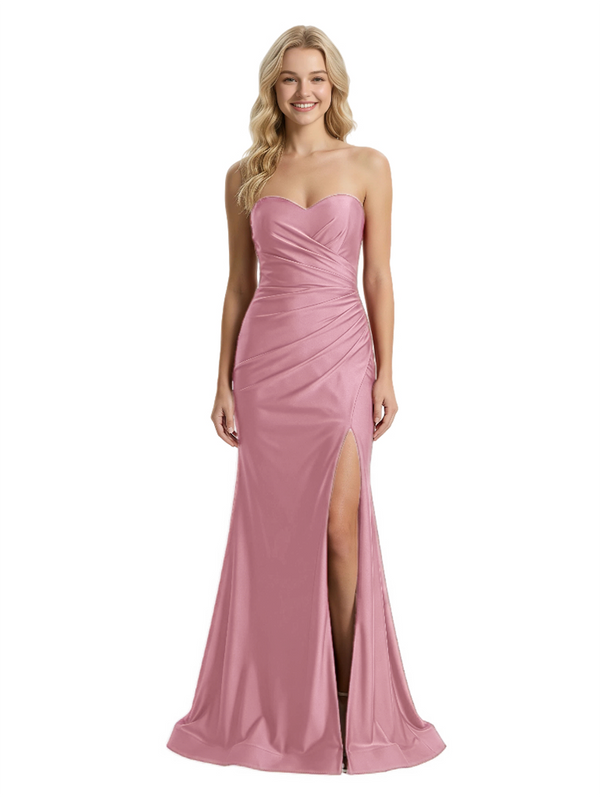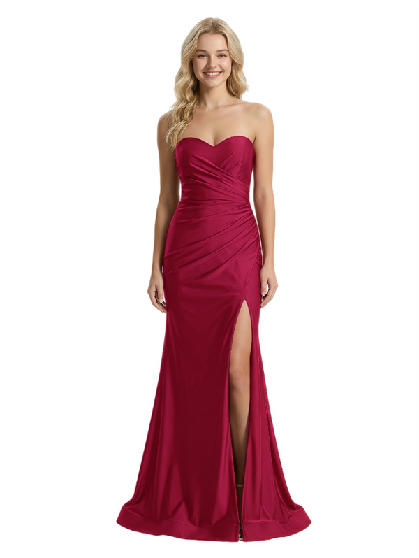 Sexy Sweetheart Ruched Prom Gown Side Slit Floor Length Mermaid Party Dress