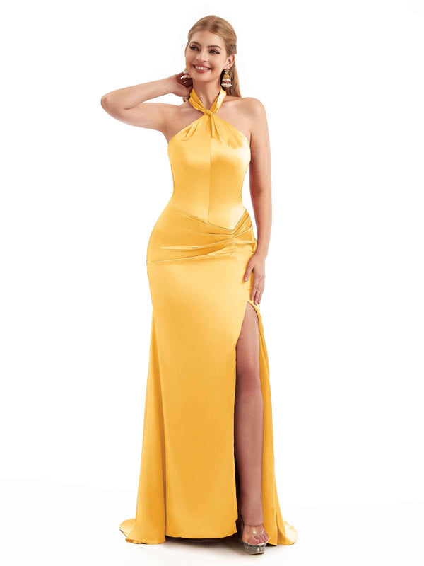 Sexy Winter Silky Halter Mermaid Satin Bridesmaid Dresses