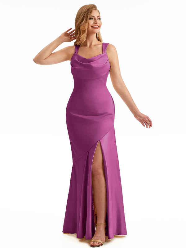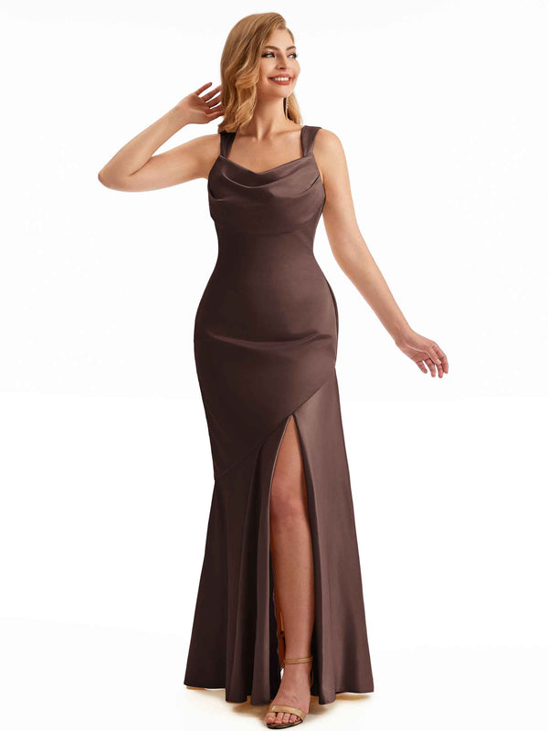 Side Slit Straps Summer Satin Bridesmaid Dresses - ChicSew – ChicSew