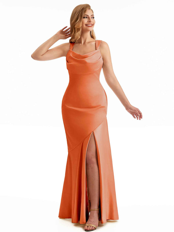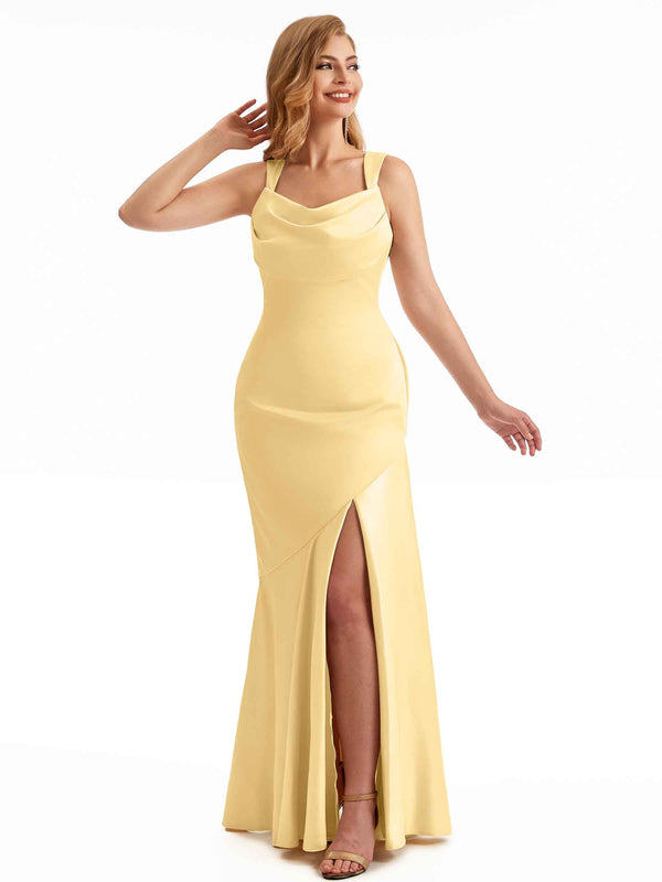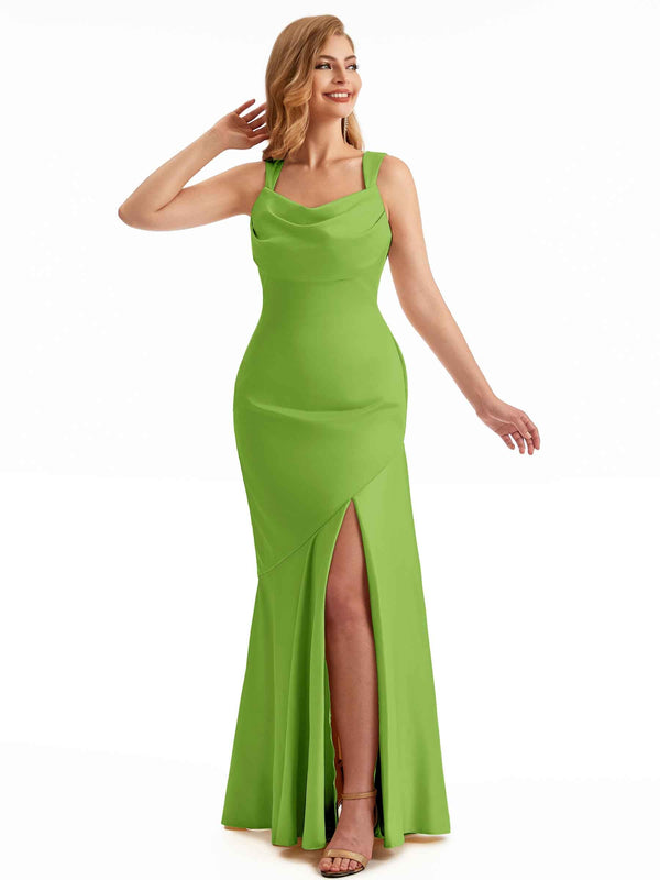 Side Slit Straps Summer Satin Bridesmaid Dresses