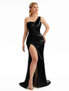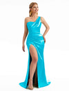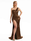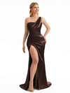 Side Split Champagne Satin Formal Bridesmaid Dresses