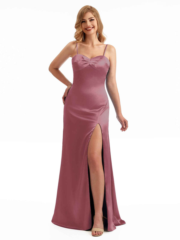 Simple Side Slit Fall Satin Mermaid Bridesmaid Dresses