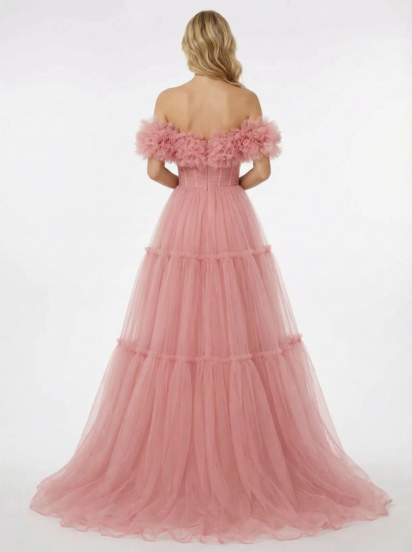 Sweet Tulle Off Shoulder Sleeveless A-line Evening Prom Dresses