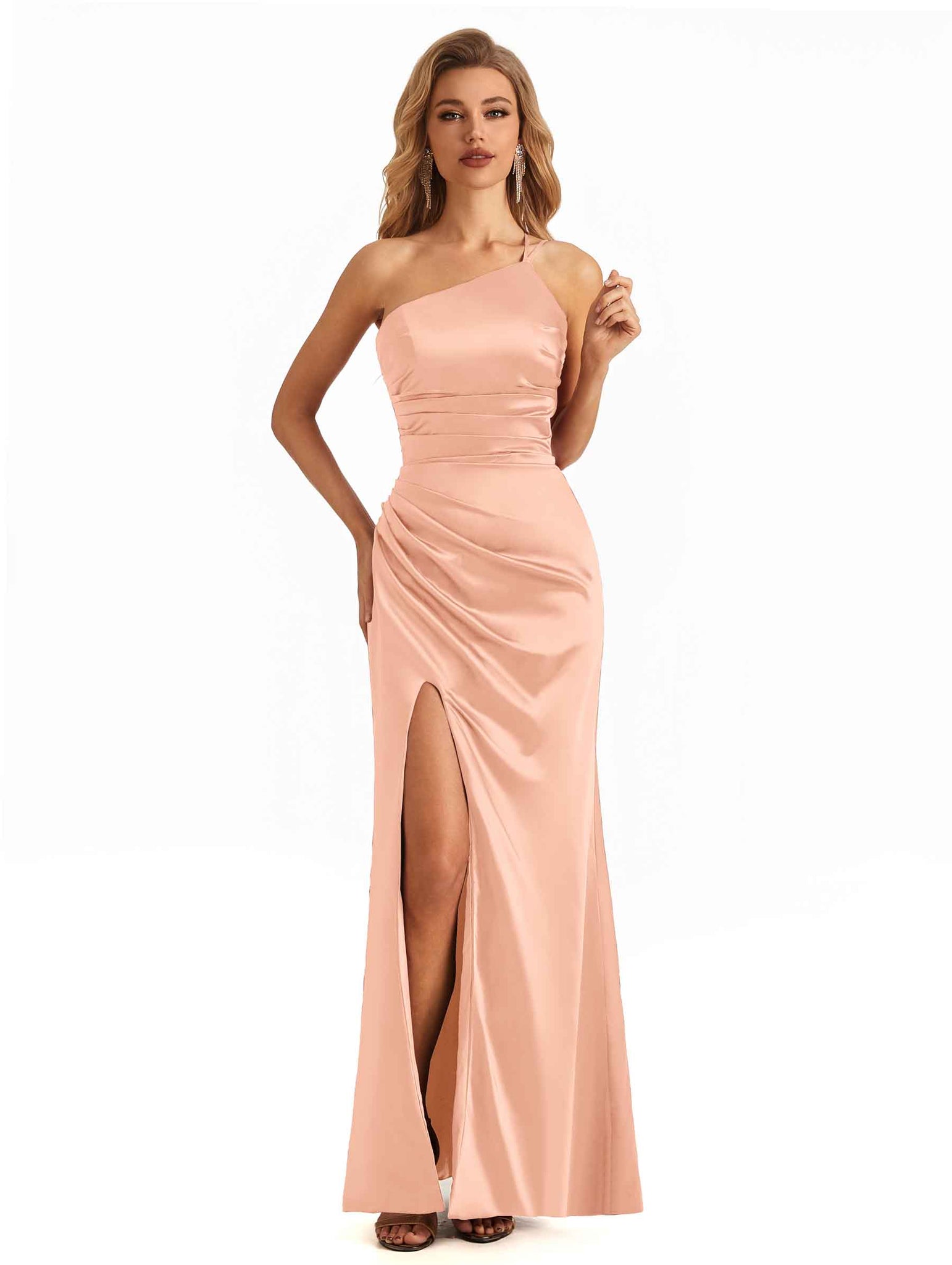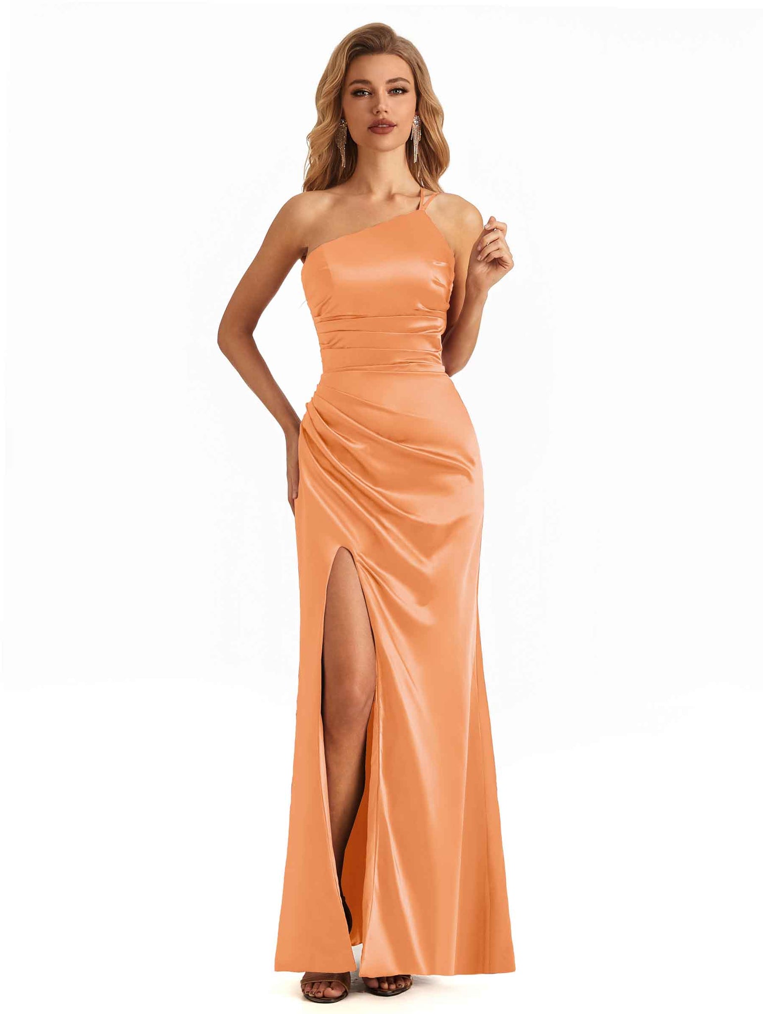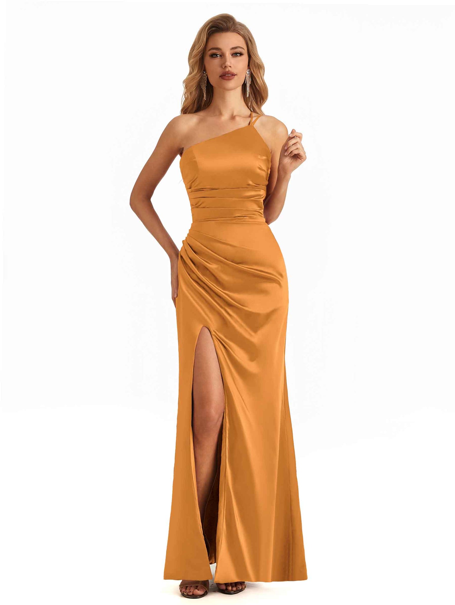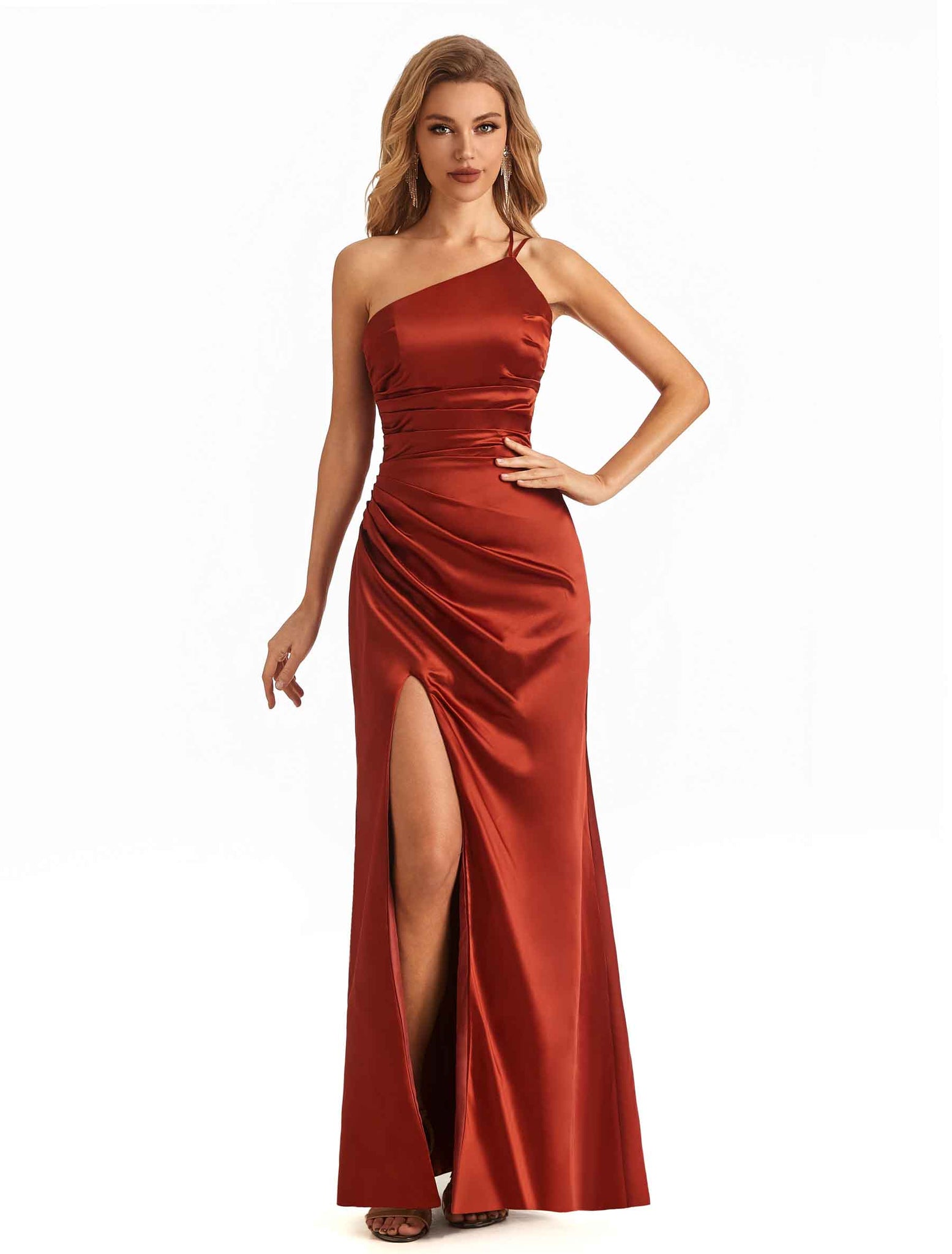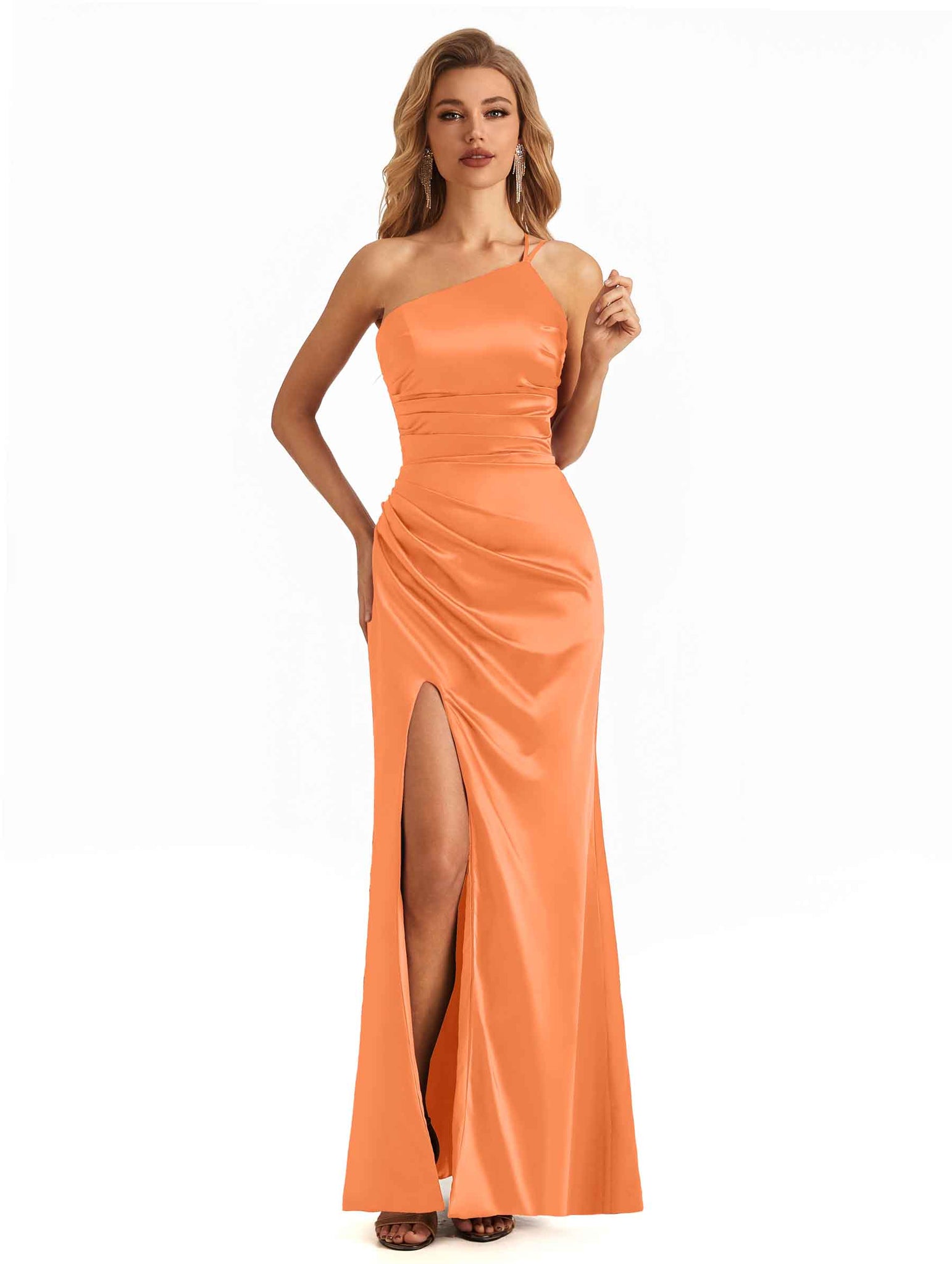 Soft Satin One Shoulder Side Slit Mermaid Maxi Long Bridesmaid Dresses Online