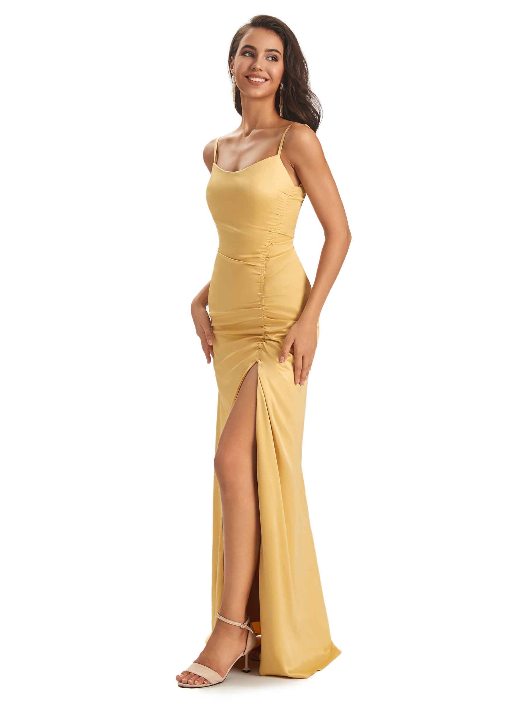 Soft Satin Side Slit Scoop Neckline Long Mermaid Bridesmaid Dresses Online