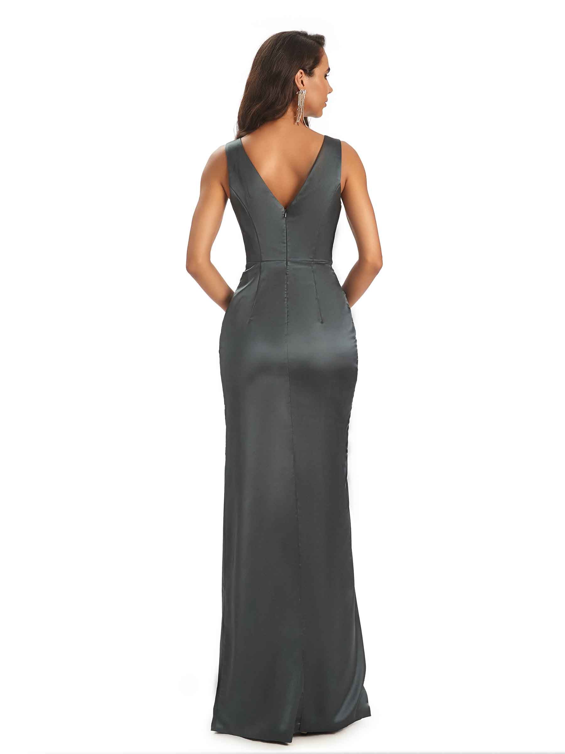 Sexy Satin V-neck Elegant Long Prom Dresses With Slit Online