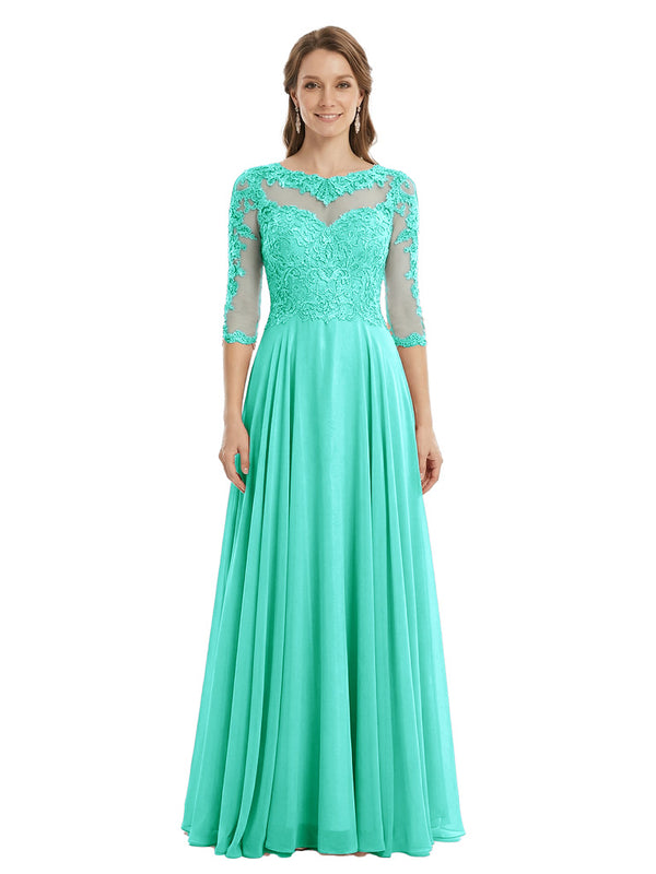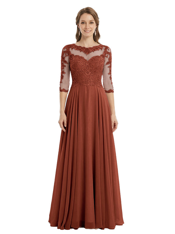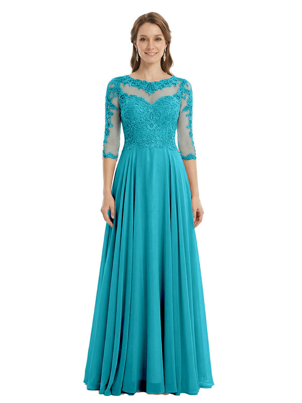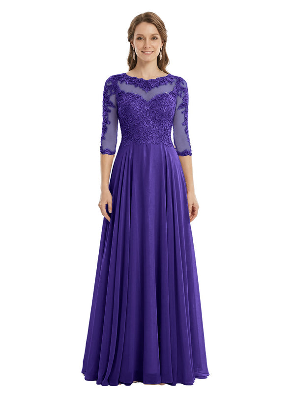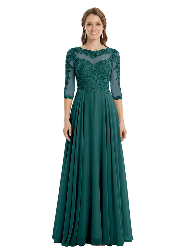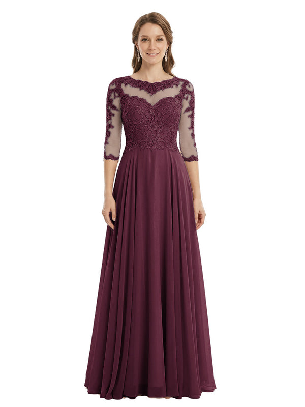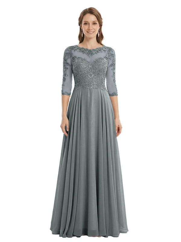 Sophisticated 3/4 Sleeves Lace Applique A-line Mother of The Bride Gown- ChicSew – ChicSew