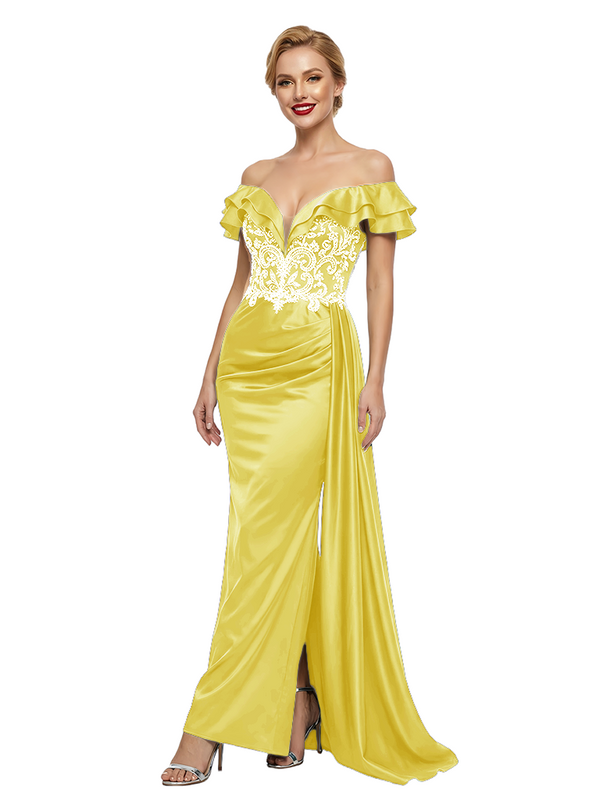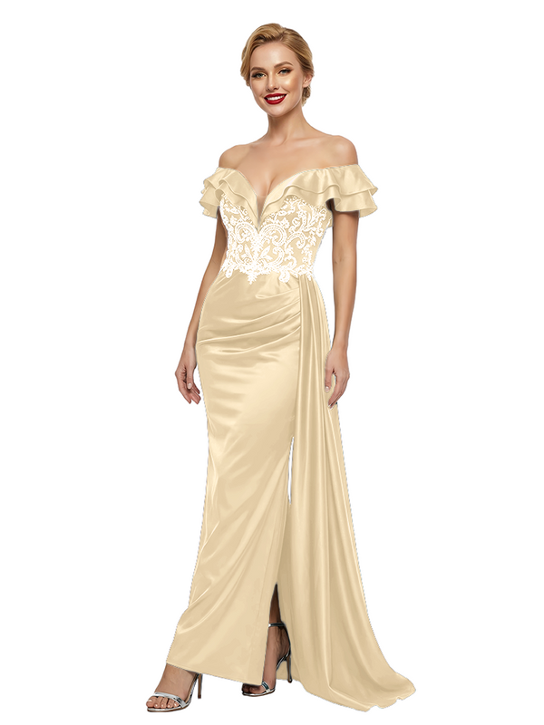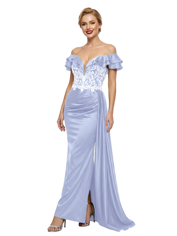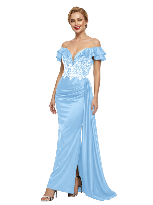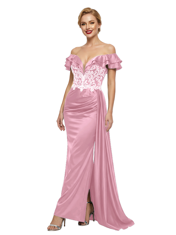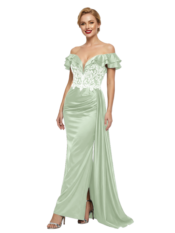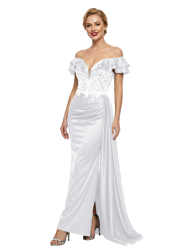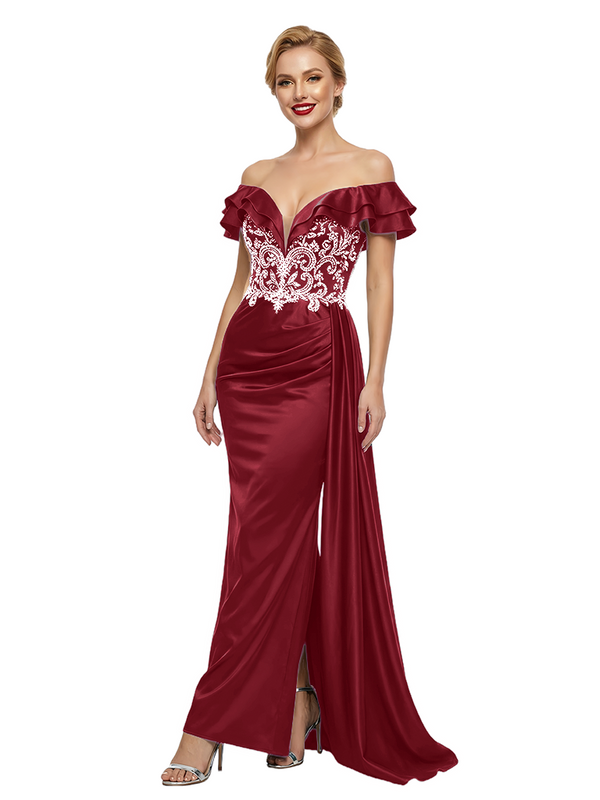ChicSew Heavily Beaded Off The Shoulder Long Satin Mermaid Party Prom Dress