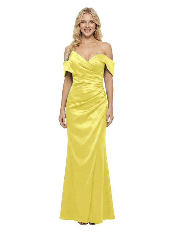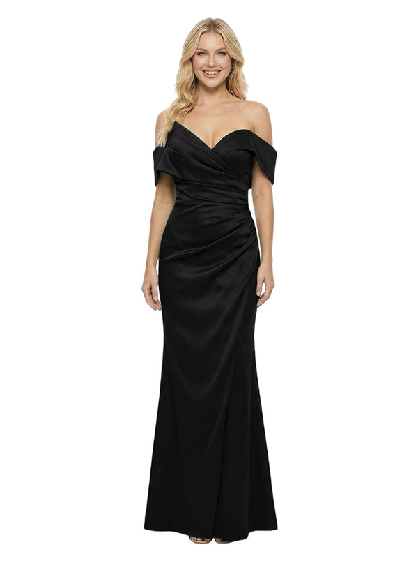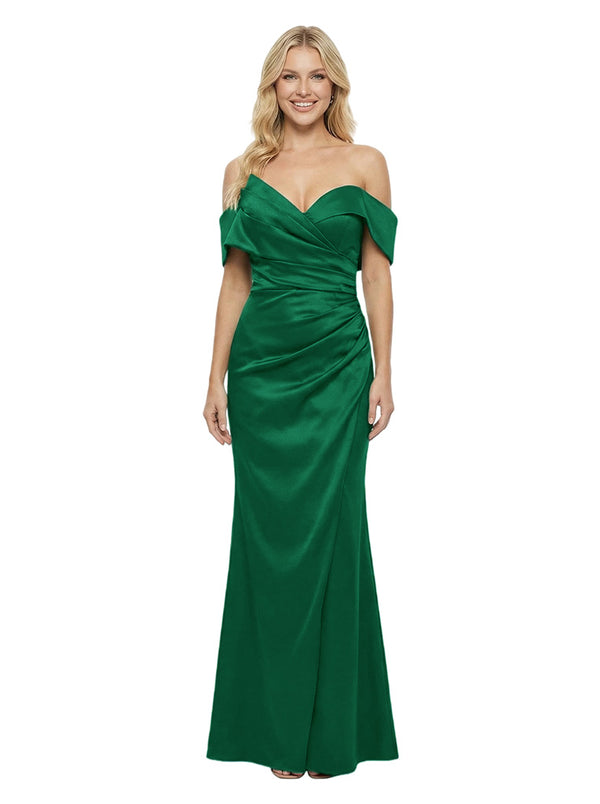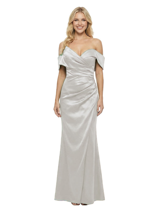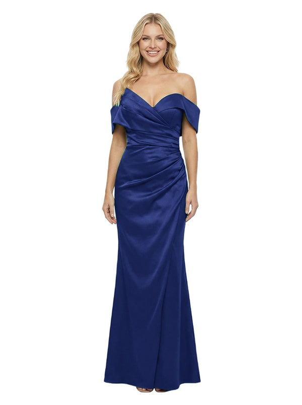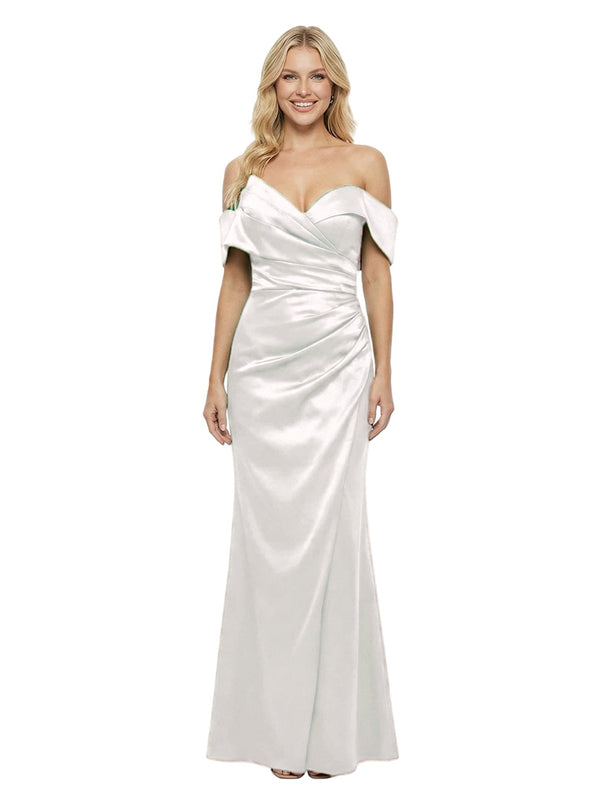Elegant Ruching Off-Shoulder Satin Mermaid Evening Dress - ChicSew – ChicSew