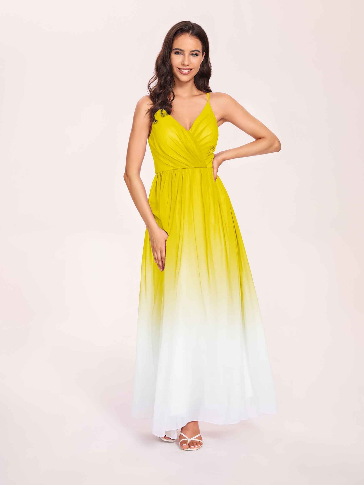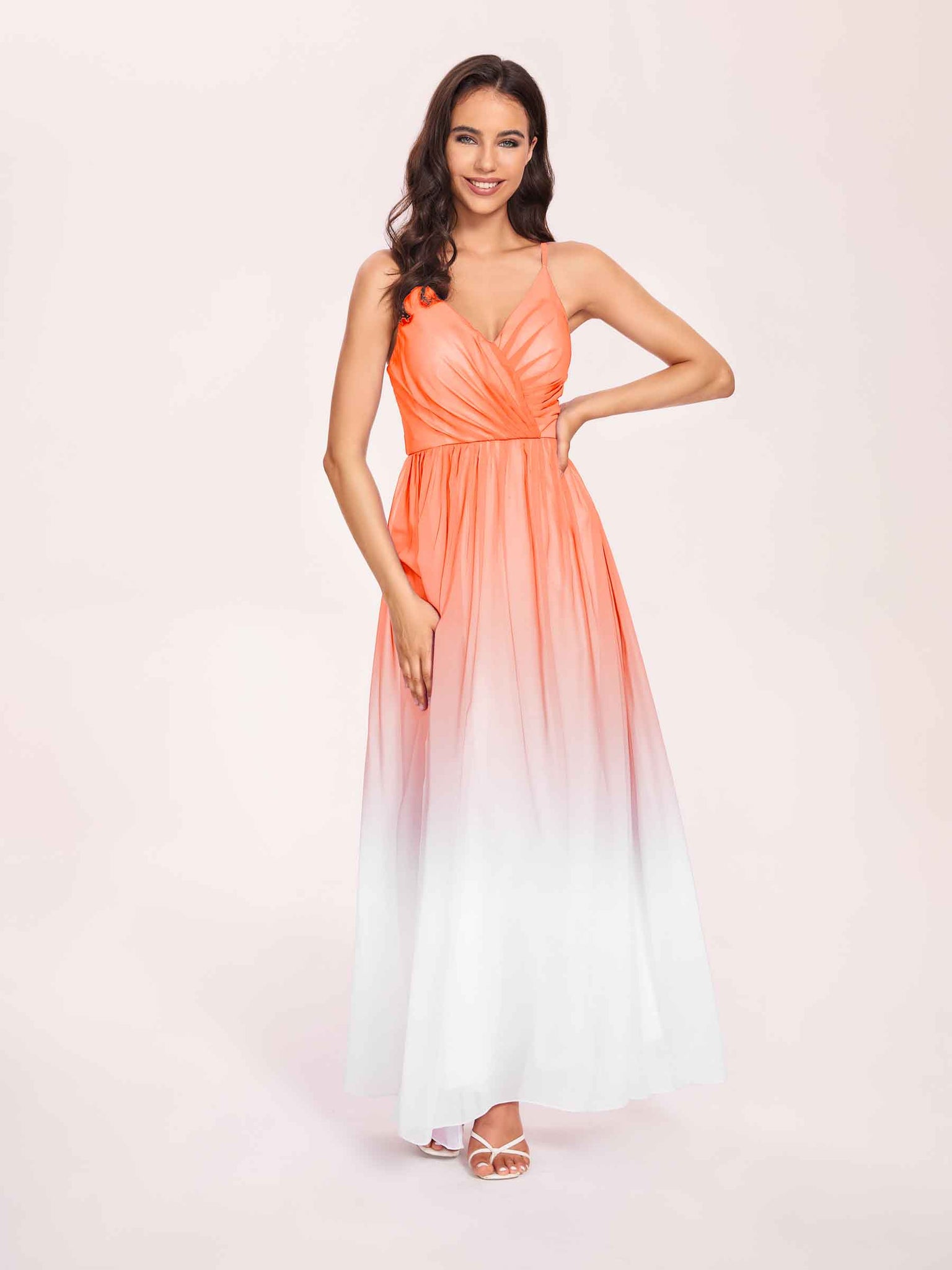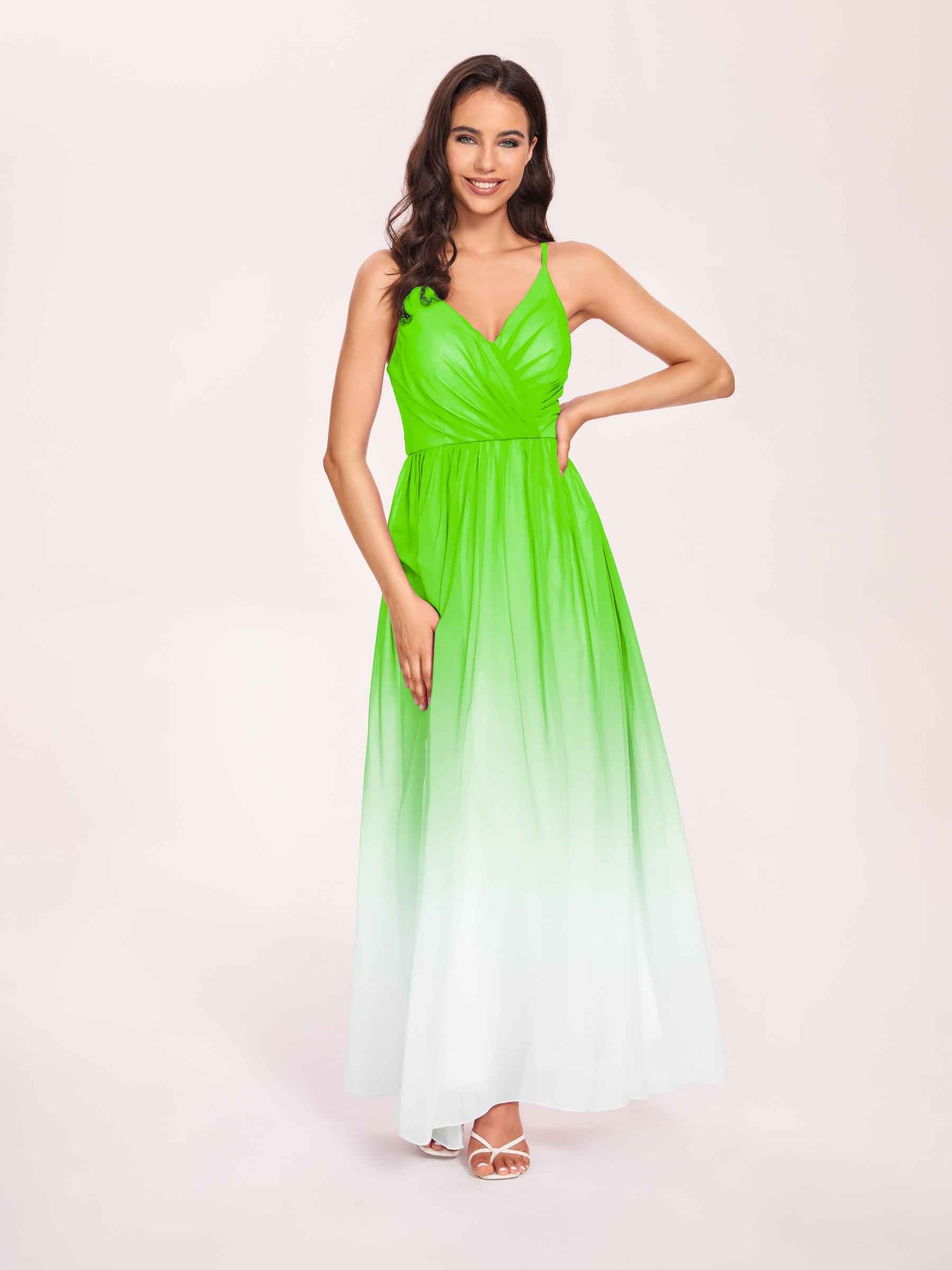 Spaghetti Straps Floral A-line Ombre Chiffon Long Bridesmaid Dresses Oline