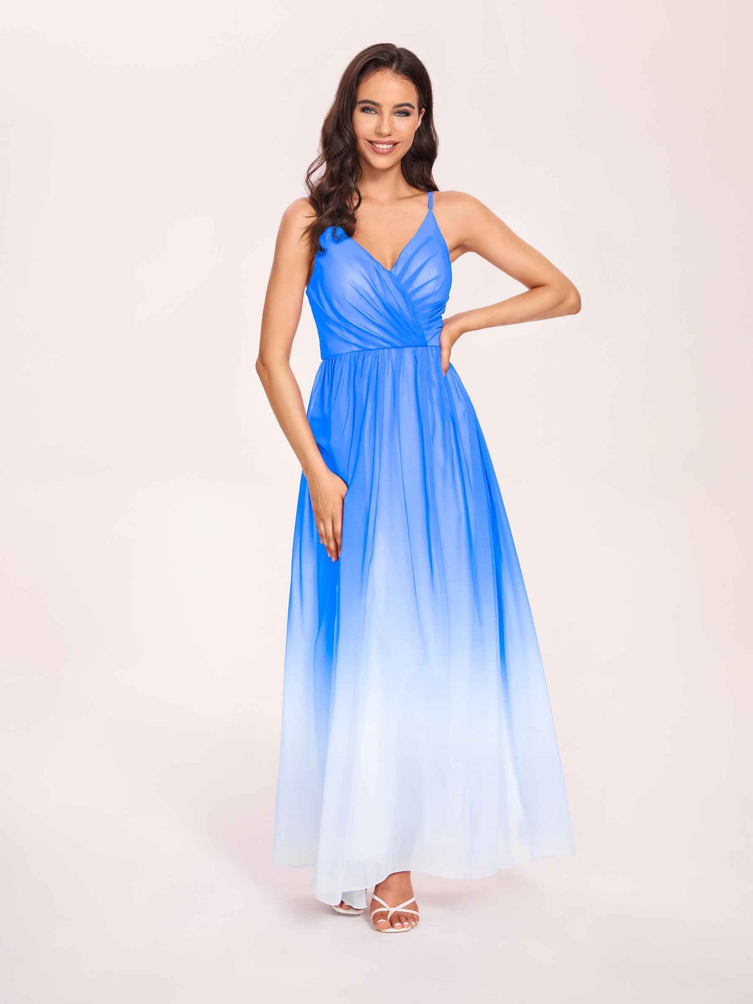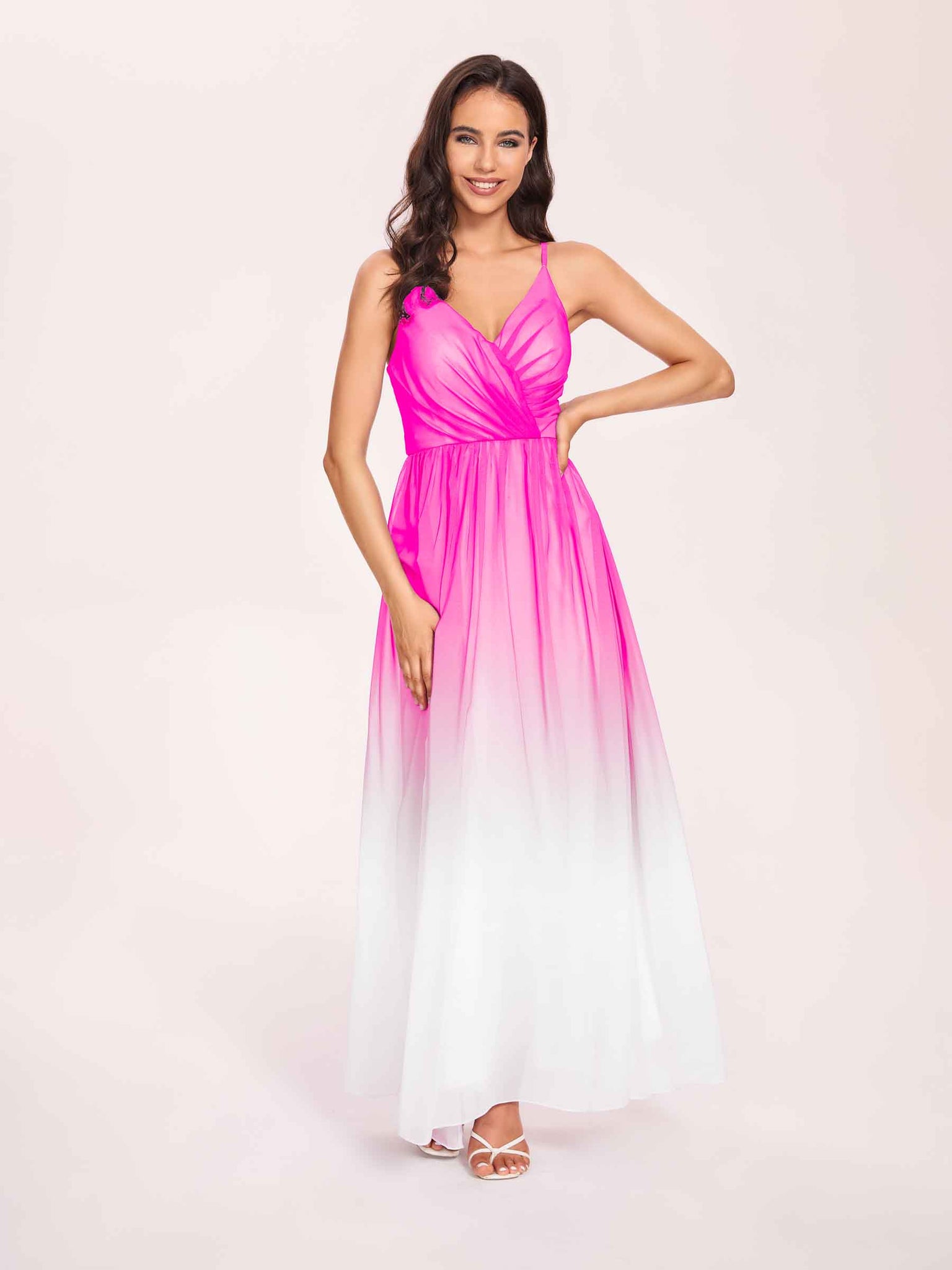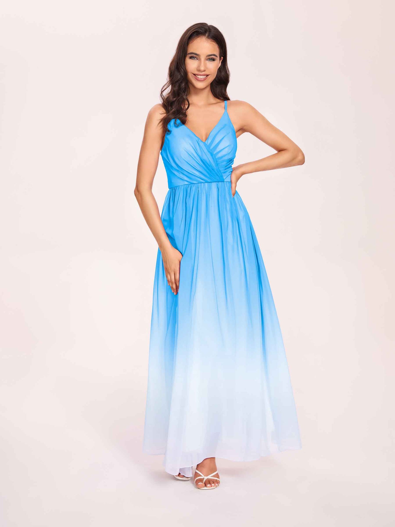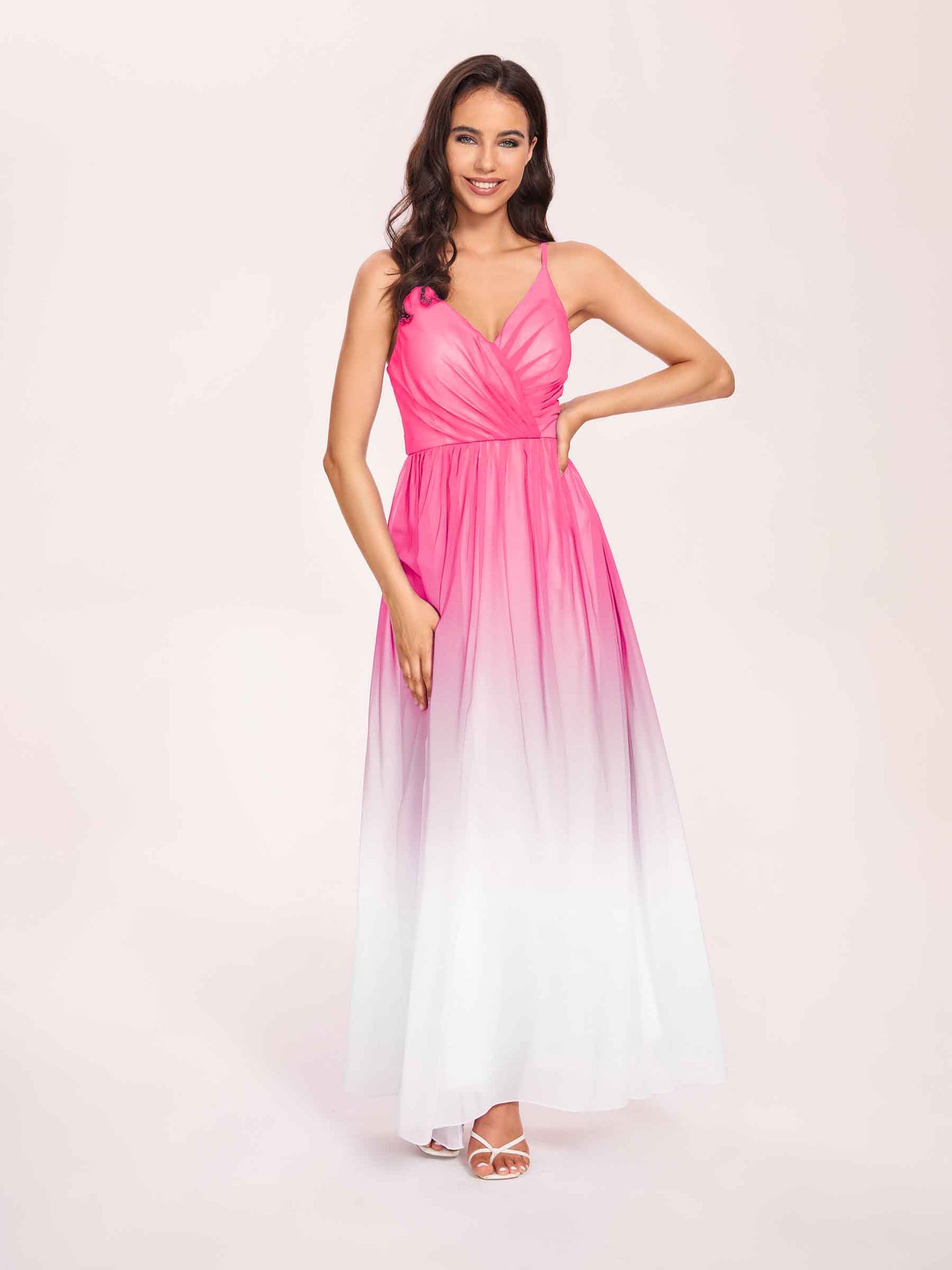 Spaghetti Straps Floral A-line Ombre Chiffon Long Bridesmaid Dresses - ChicSew – ChicSew