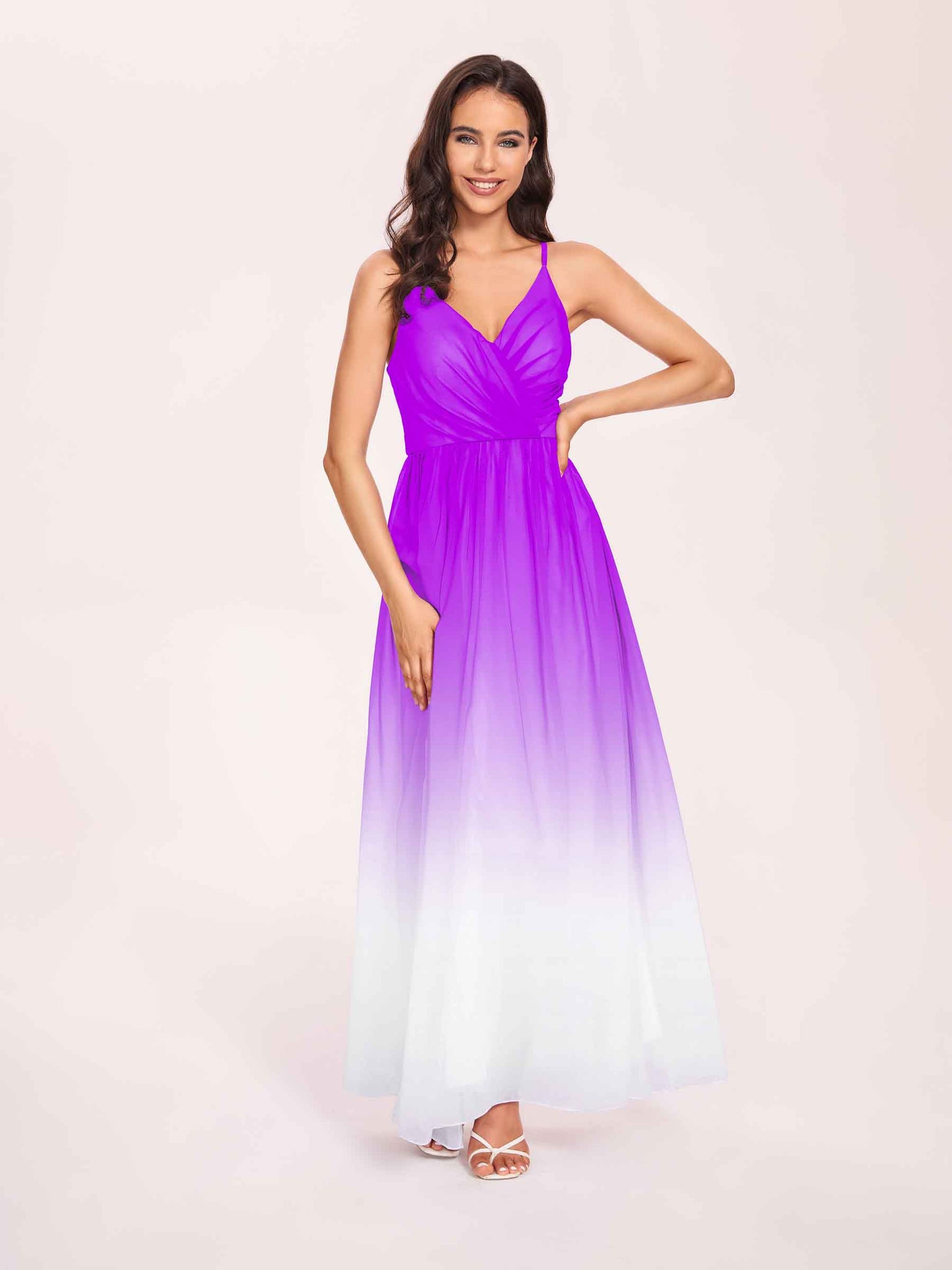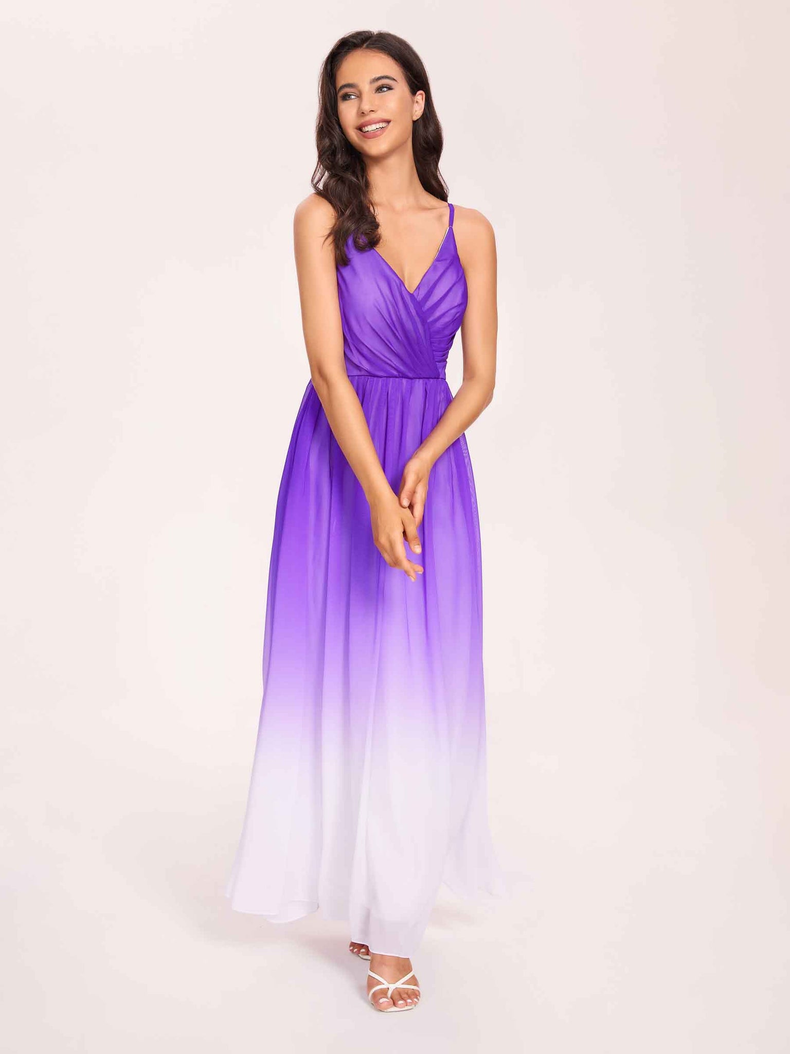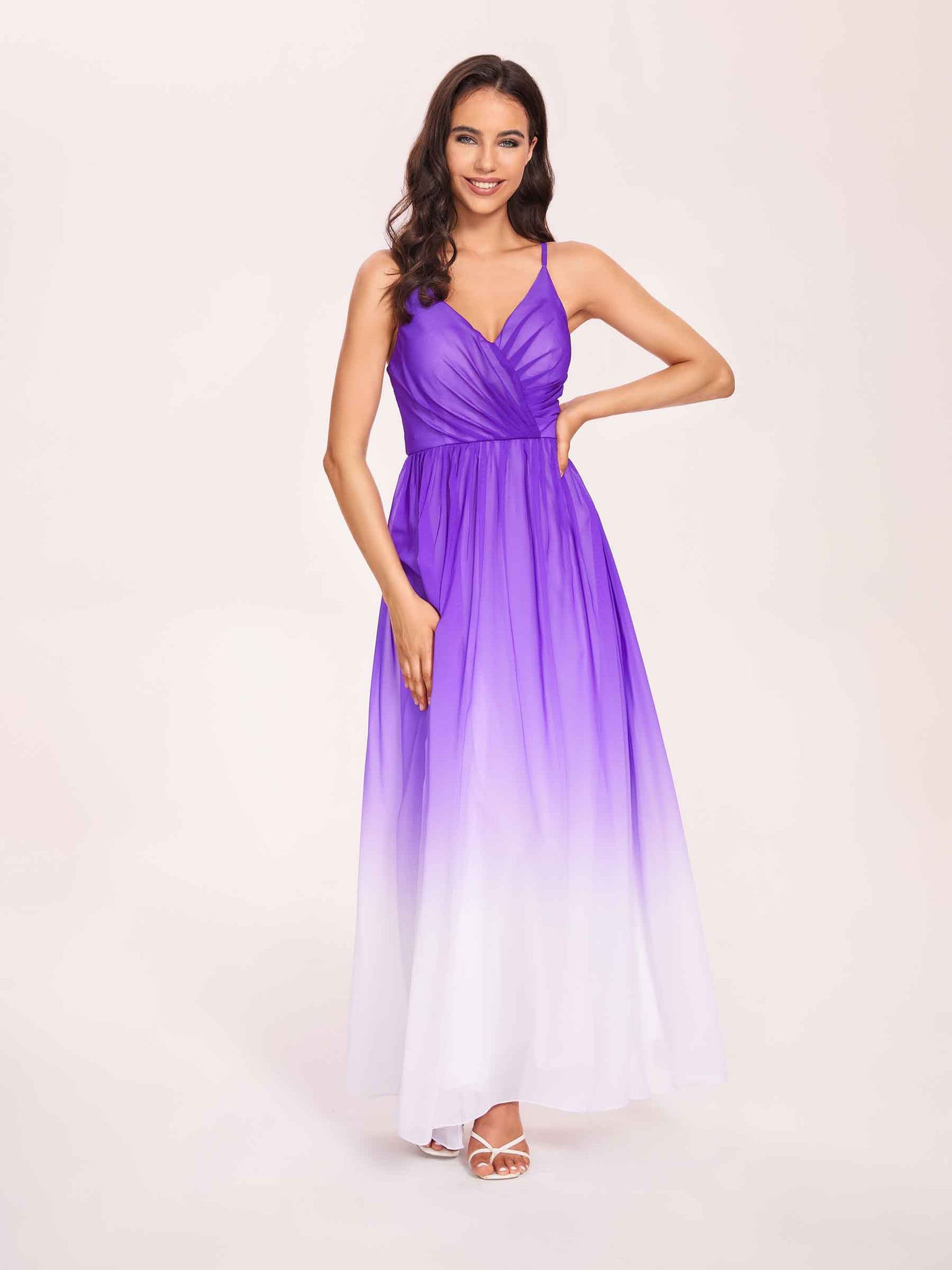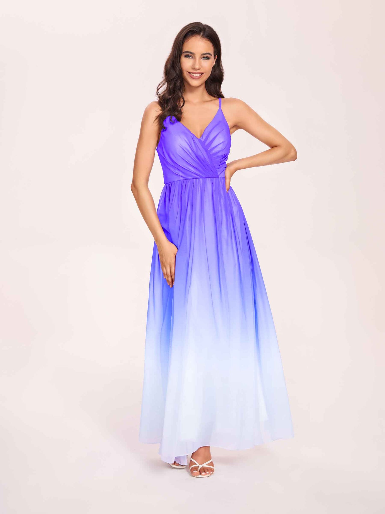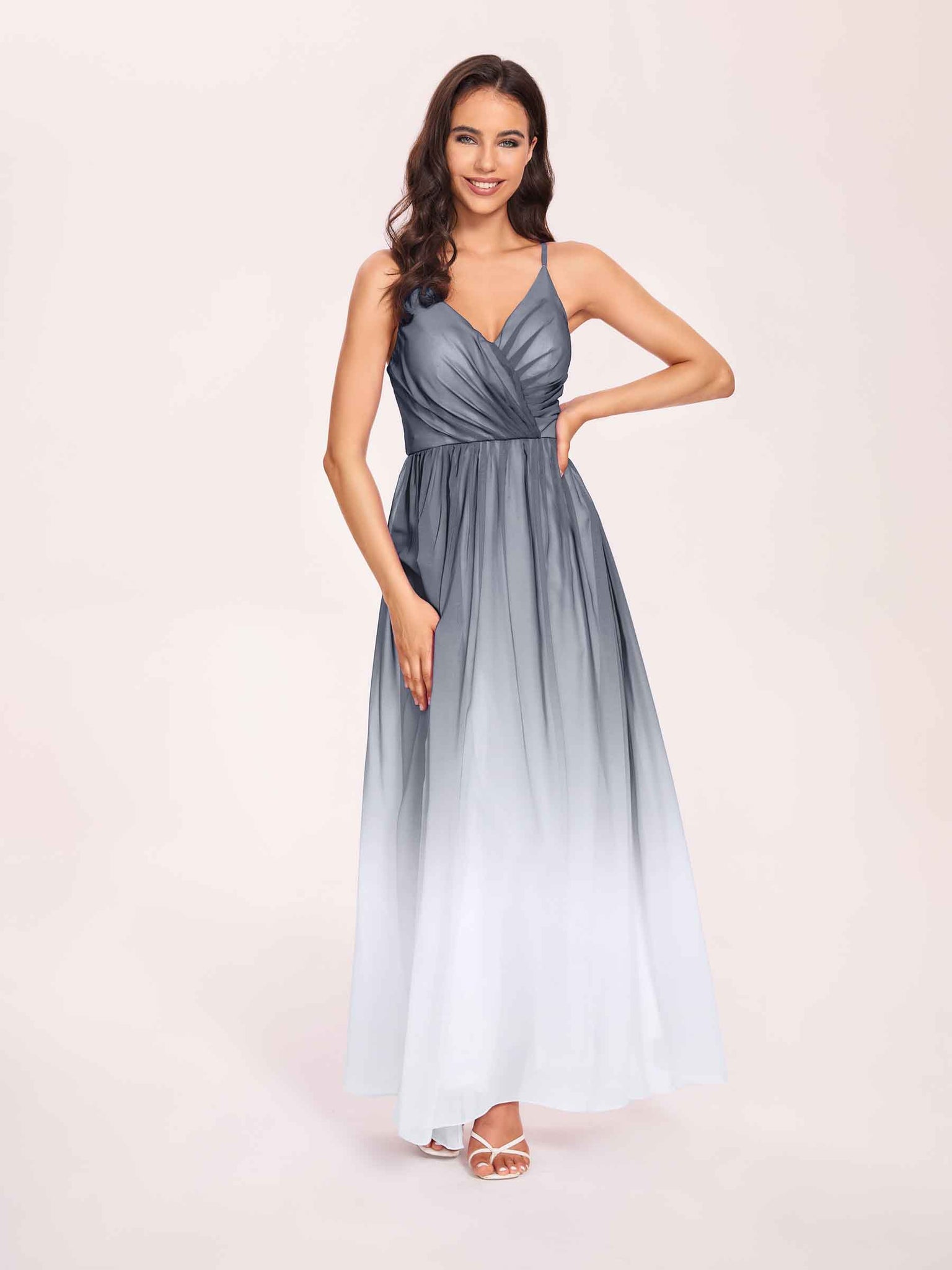 Spaghetti Straps Floral A-line Ombre Chiffon Long Bridesmaid Dresses - ChicSew – ChicSew