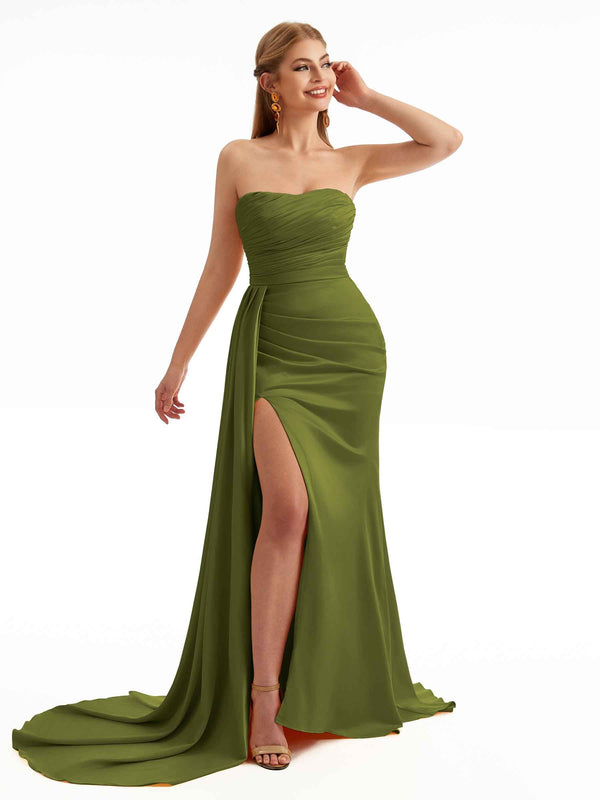 Strapless Side Sash Overlay Boho Bridesmaid Dresses Stretch Satin - Chicsew – ChicSew
