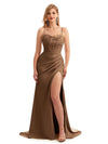 The ruching and draping on our dresses are fixed with stitching, as this is the only way to hold the pleats in place. Since the fabric is soft satin and stretchy, if your measurements are larger than the dress, it will be tight and the pleats will flatten out. If you take off the dress, the stitches may stretch, but you can adjust the pleats by gently pulling them to the sides to restore their shape.