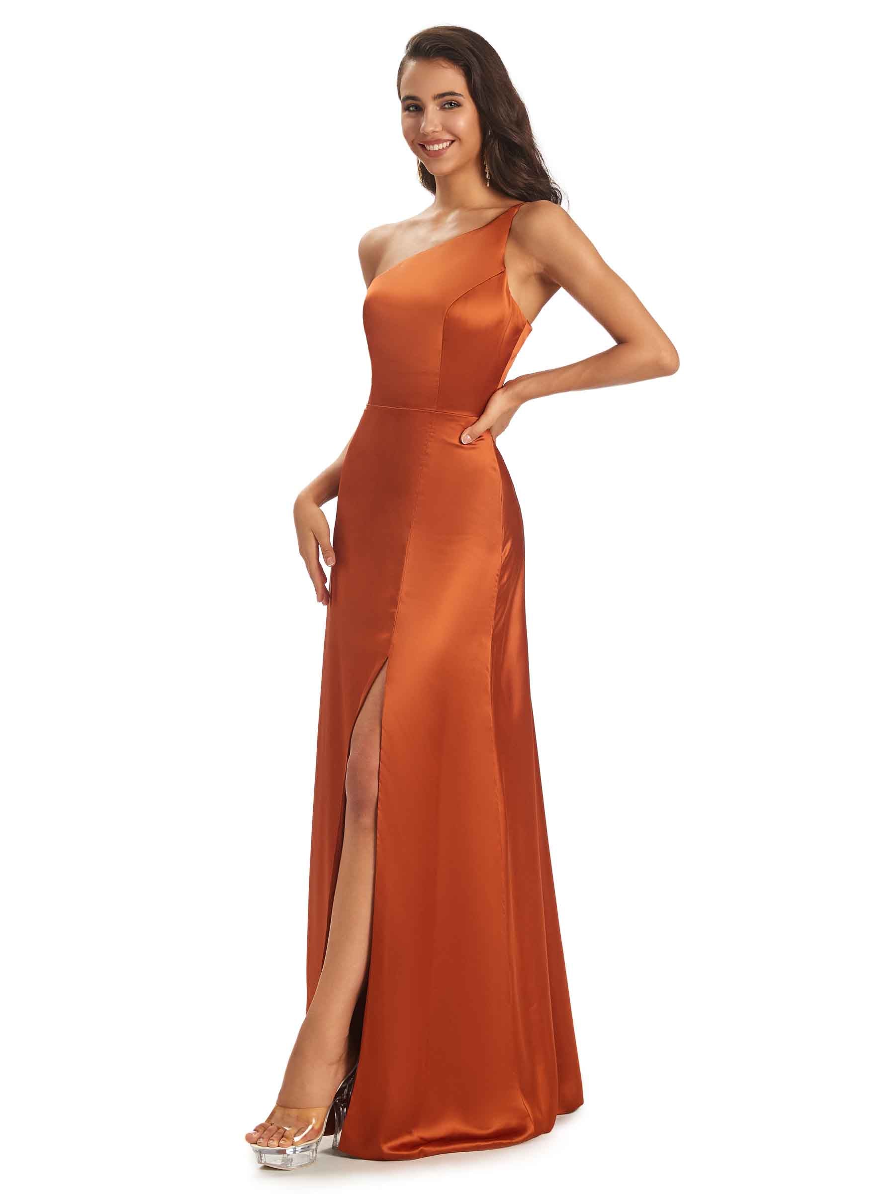Stylish Soft Satin Side Slit One Shoulder Floor-Length A-Line Bridesmaid Dresses - ChicSew – ChicSew