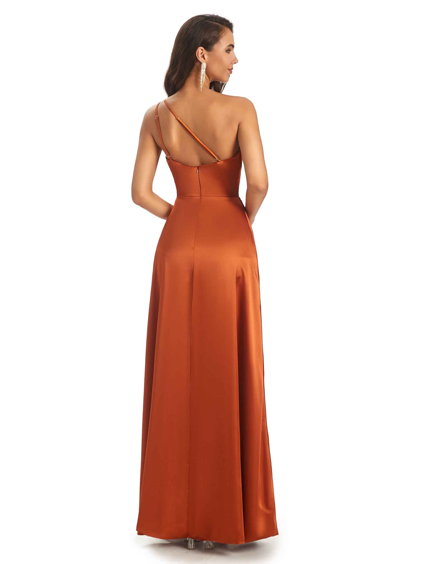 Simple One Shoulder Satin Prom Dresses With Slit Online