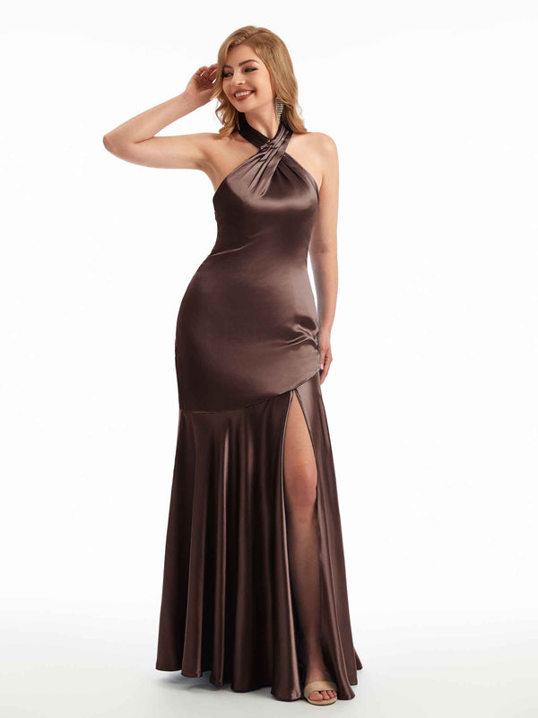 Summer Sexy Halter Ruffles Satin Long Bridesmaid Dresses - ChicSew – ChicSew