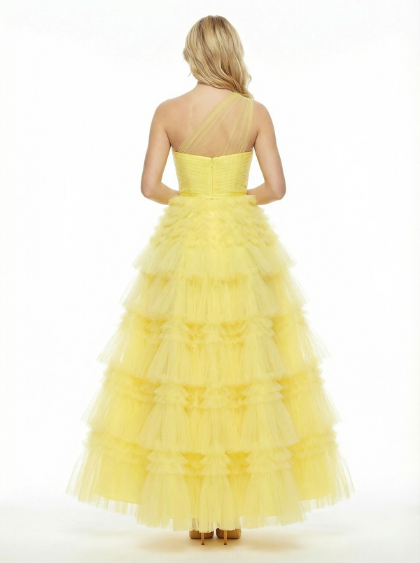 Elegant Tulle Lace Ruffles Off The Shoulder Ball Gown Prom Dress