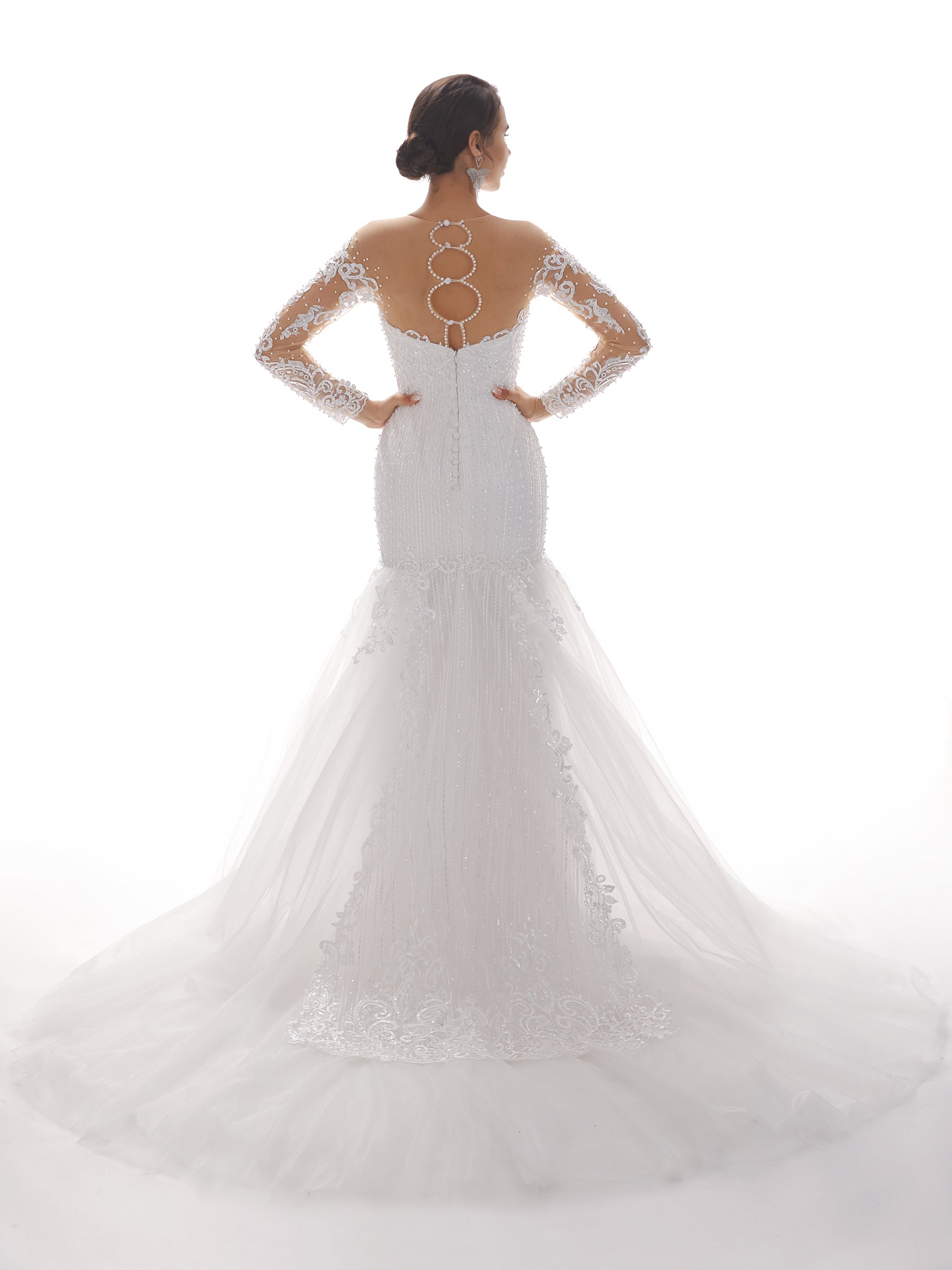 Sweetheart Long Sleeves Long Mermaid Ivory Lace Chapel Train Wedding Dresses - ChicSew – ChicSew