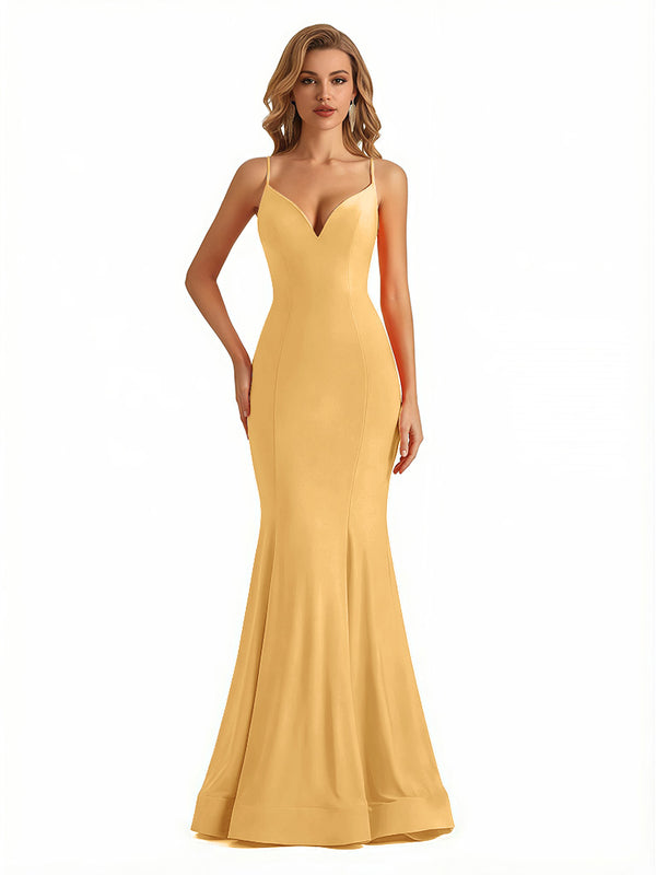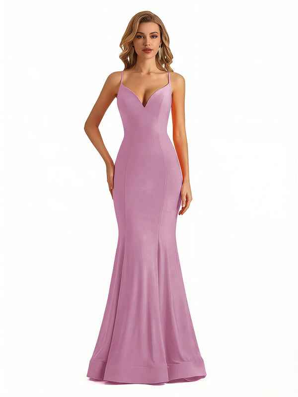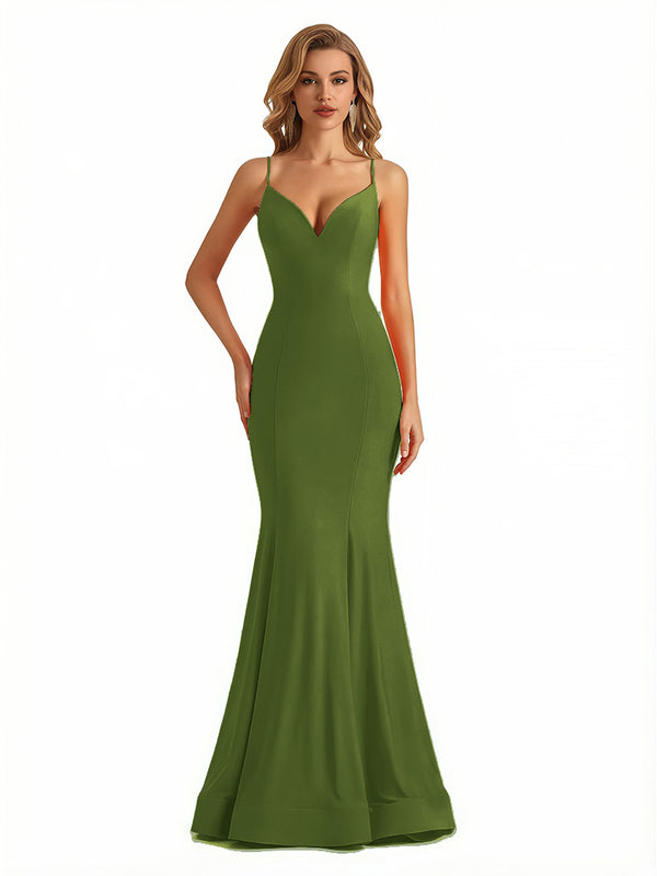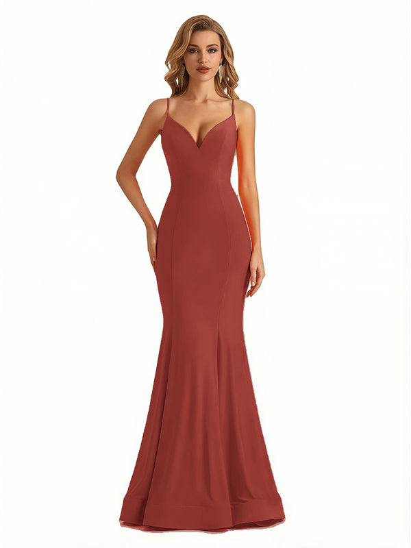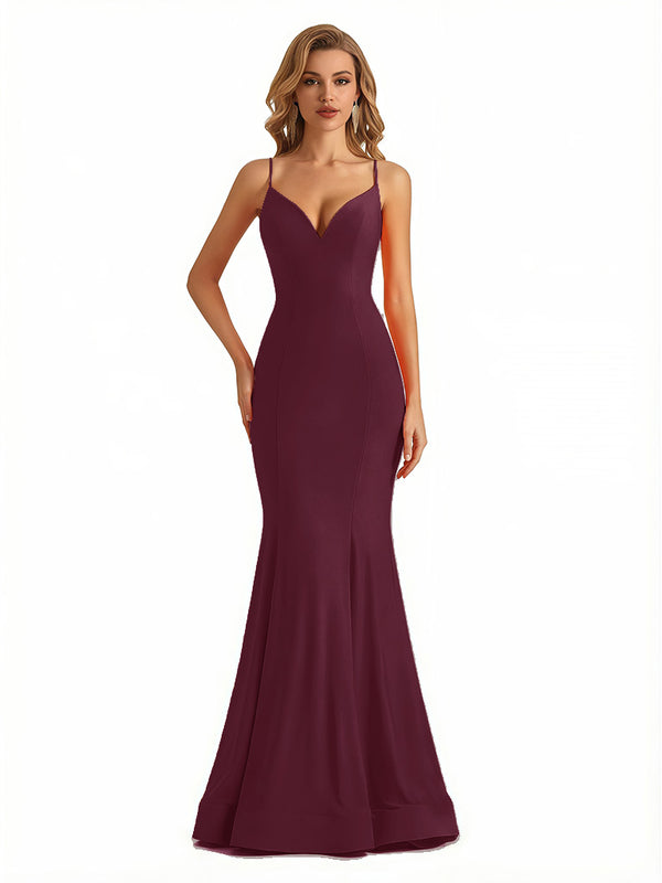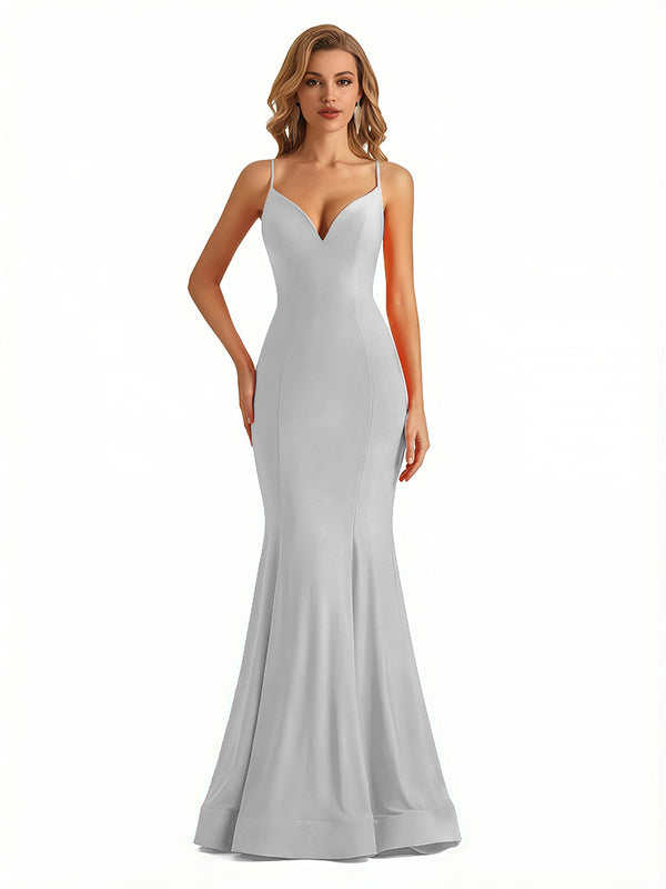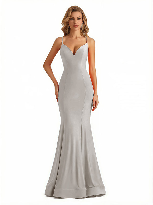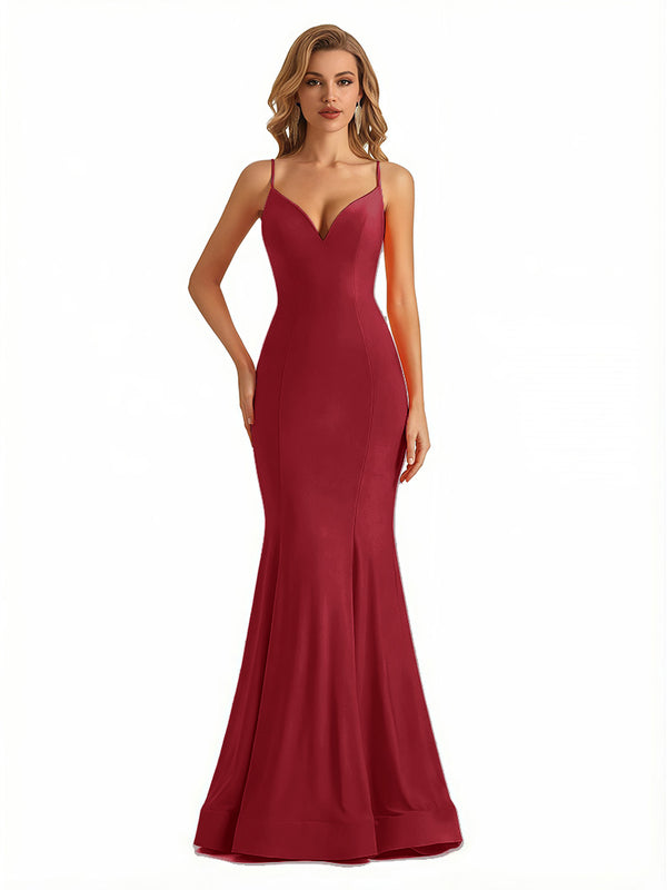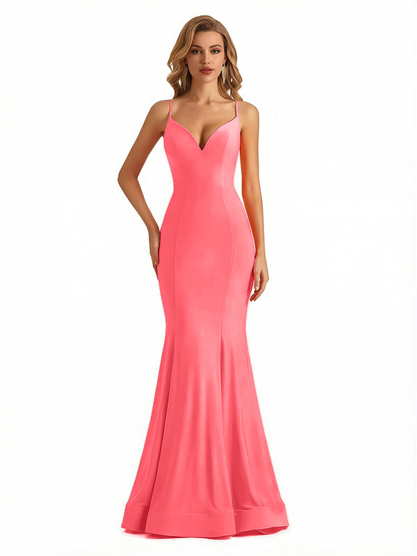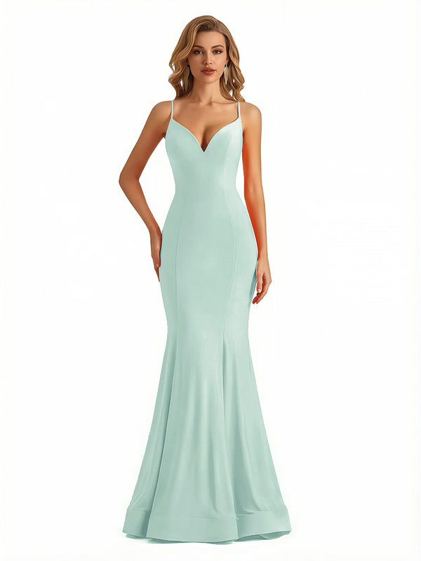 Trendy V-Neck Spaghetti Straps Jersey Mermaid Floor Length Evening Formal Dresses - ChicSew – ChicSew