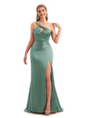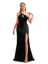 Unique Black Long One Shoulder Satin Bridesmaid Dresses $139.99