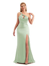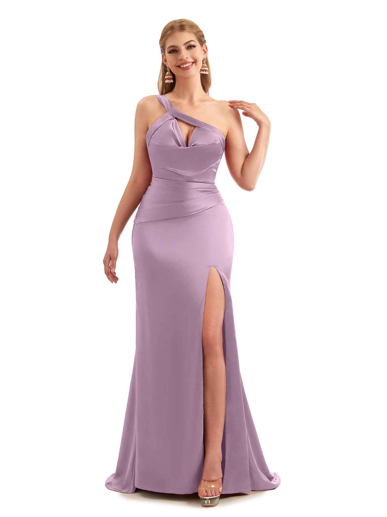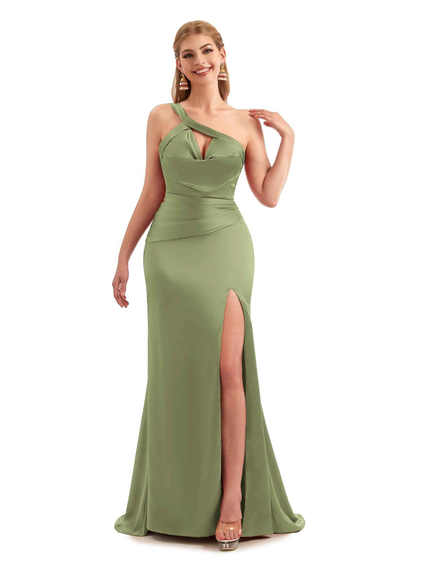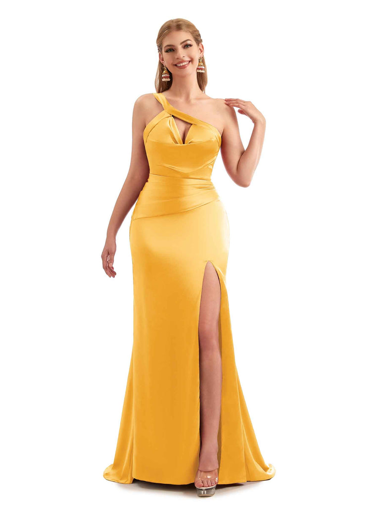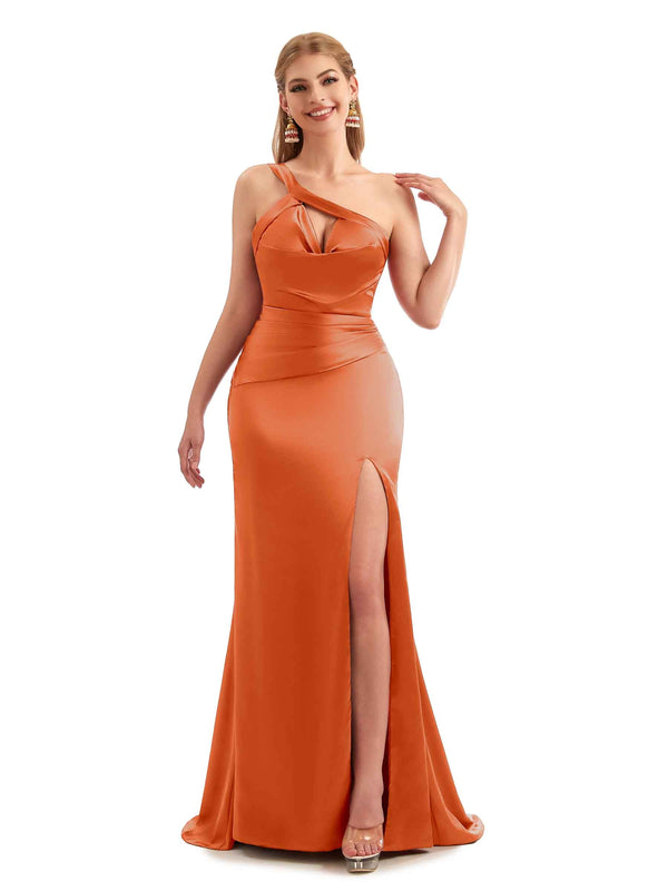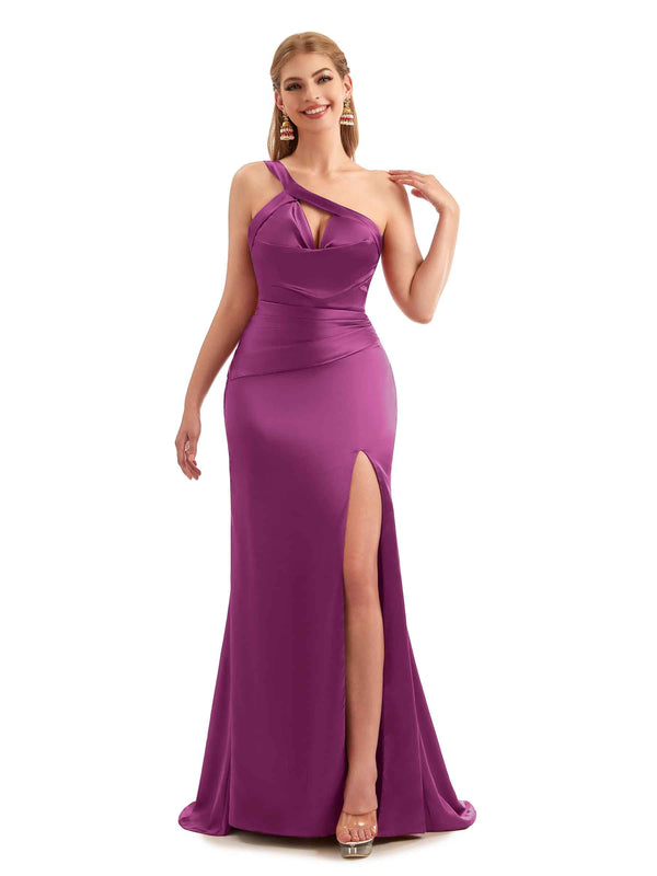 Unique Black Long One Shoulder Satin Bridesmaid Dresses - ChicSew – ChicSew