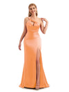 Unique Black Long One Shoulder Satin Bridesmaid Dresses