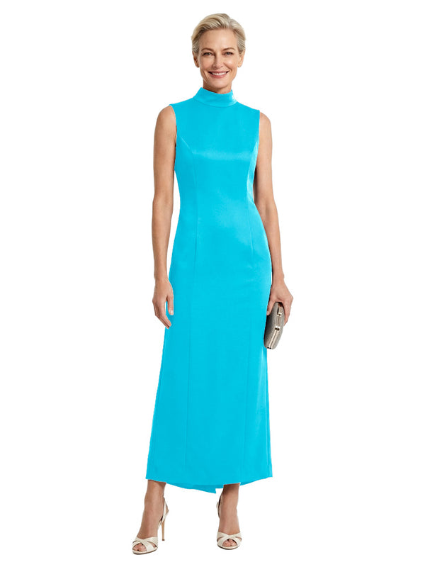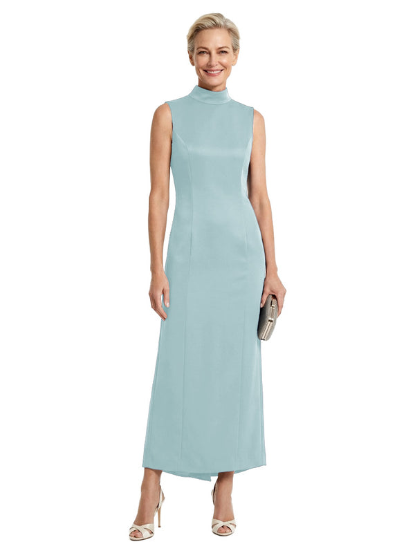 Unique High Neck Sleeveless Sheath Classy Satin Mother of the Groom Evening Dress