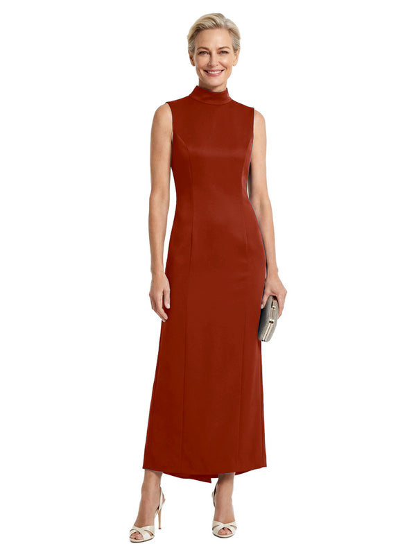 Unique High Neck Sleeveless Sheath Classy Satin Mother of the Groom Evening Dress - ChicSew – ChicSew