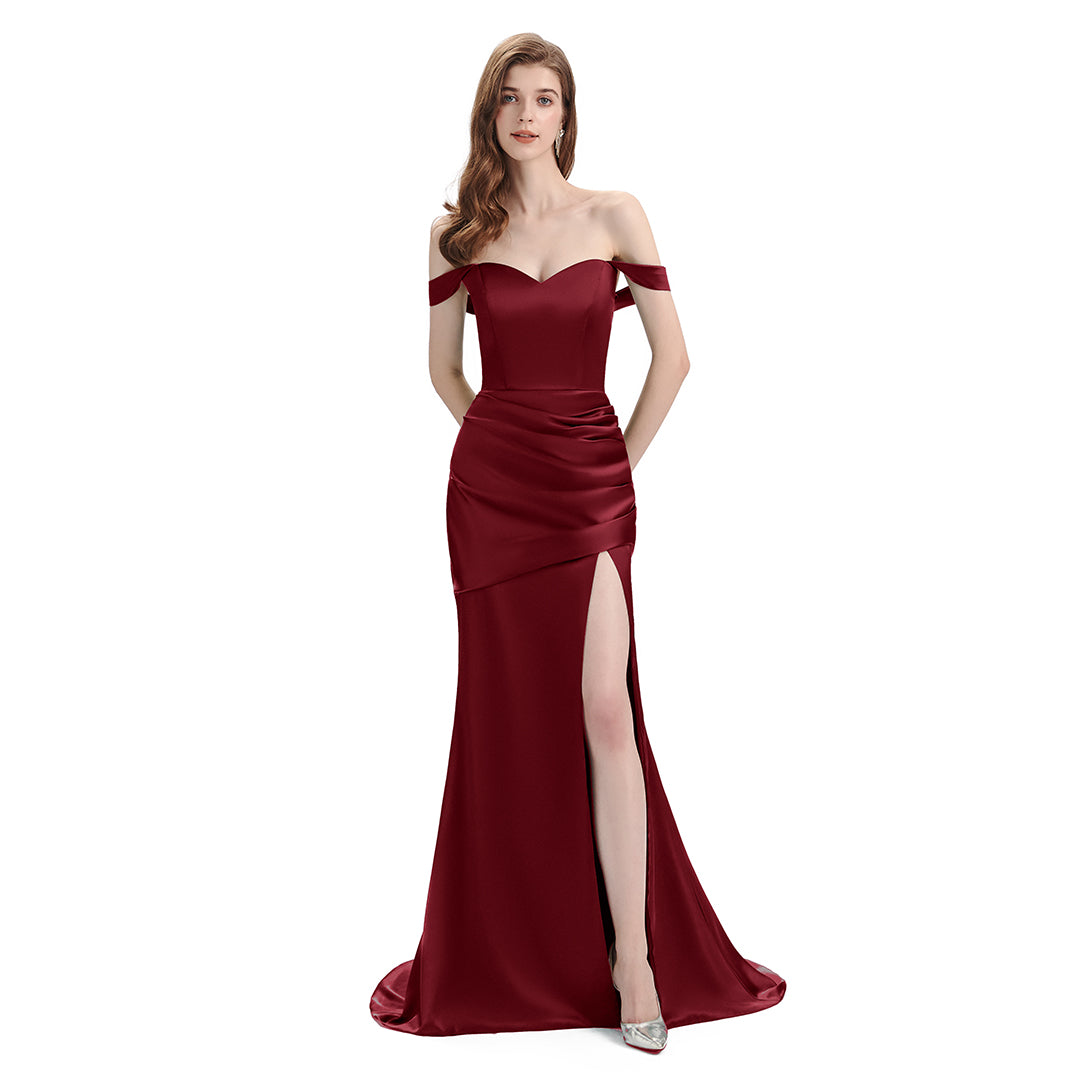 These 4 styles are made of high quality soft satin, the material is soft, smooth and comfortable, compared with chiffon, it's more stretchy, luster, unique and looks more luxurious. They are all mermaid bridesmaid dresses with slit in the skirt, look very sexy but easy to move, there are off shoulder, strapless, halter design to choose.