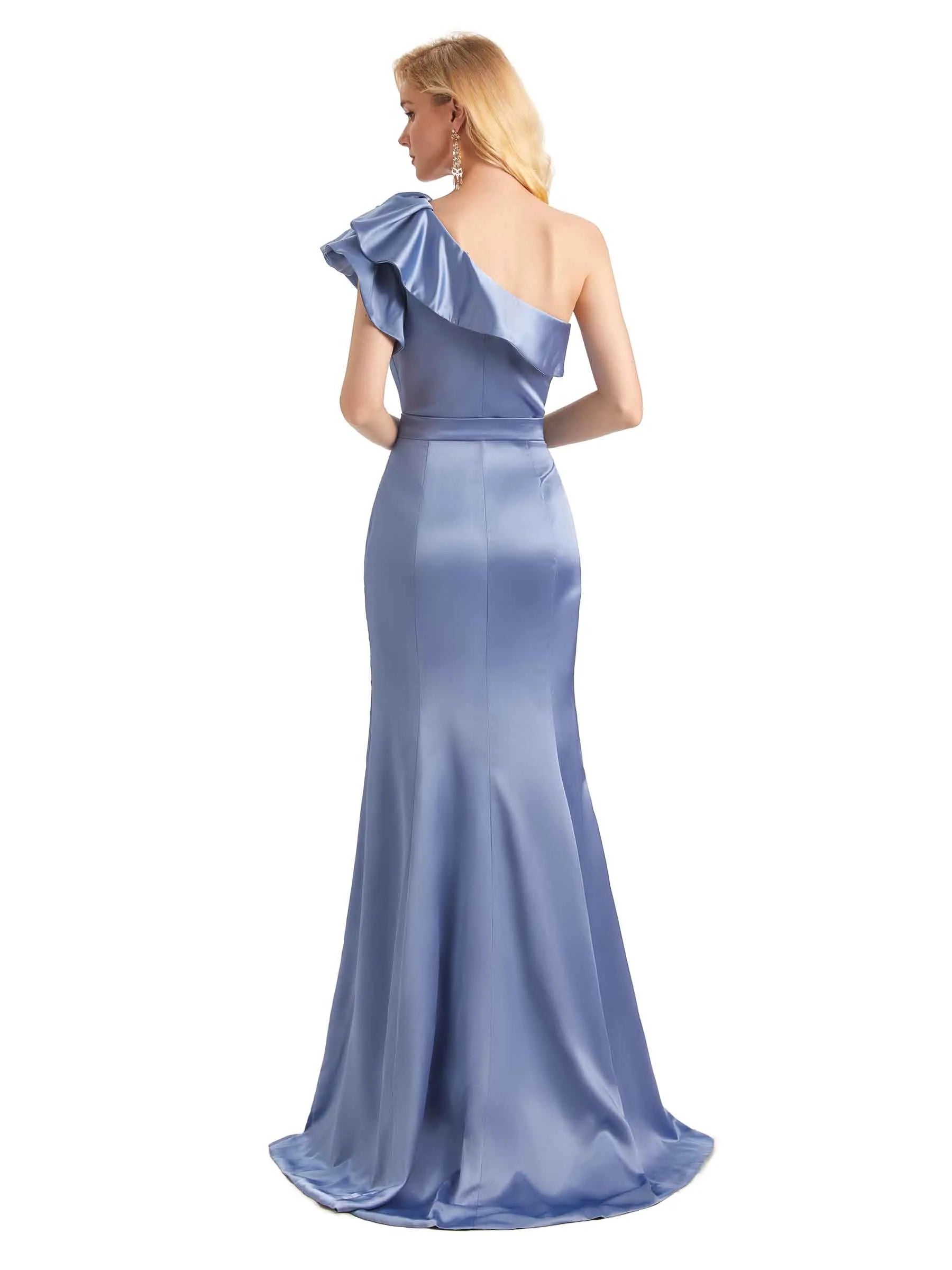 Unique Soft Satin One Shoulder Long Mermaid Evening Prom Dresses Online