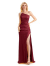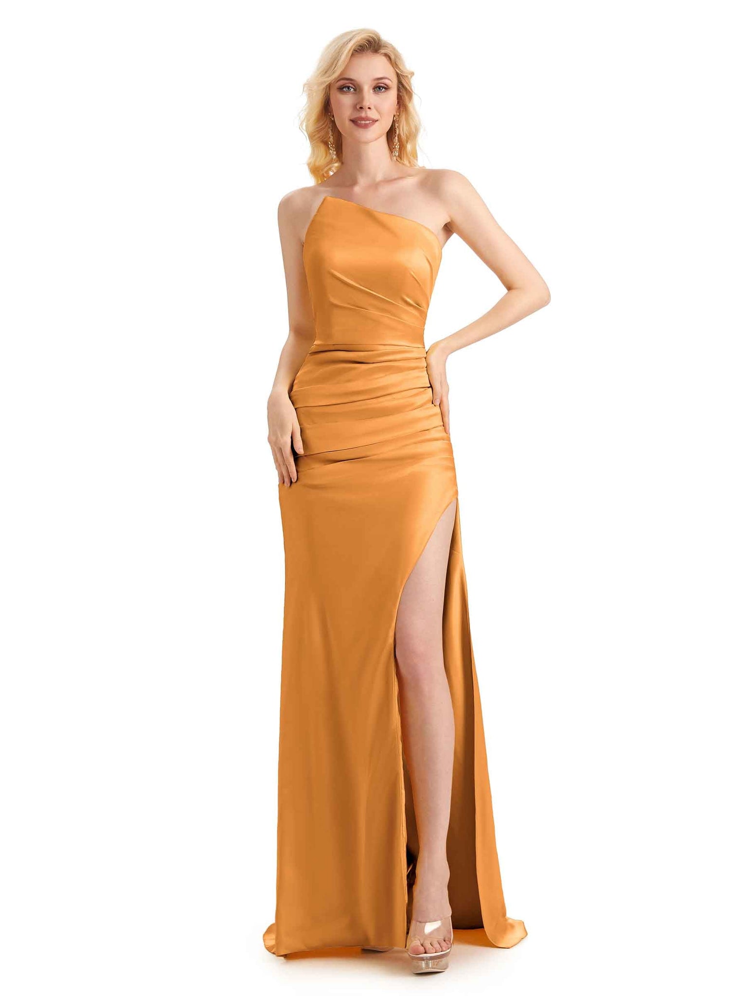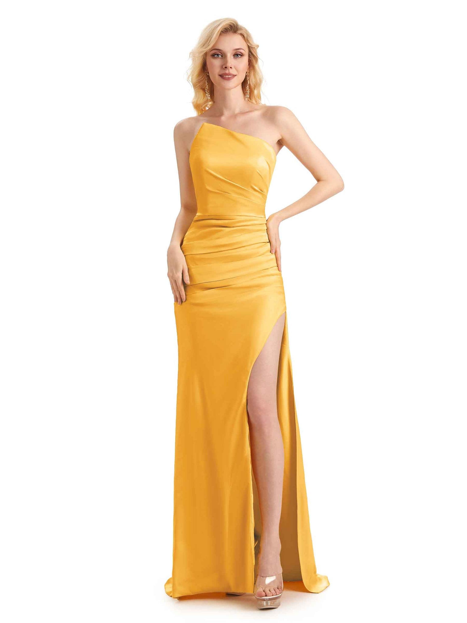 Unique Soft Satin Side Slit One Shoulder Long Mermaid Maid of Honor Dresses
