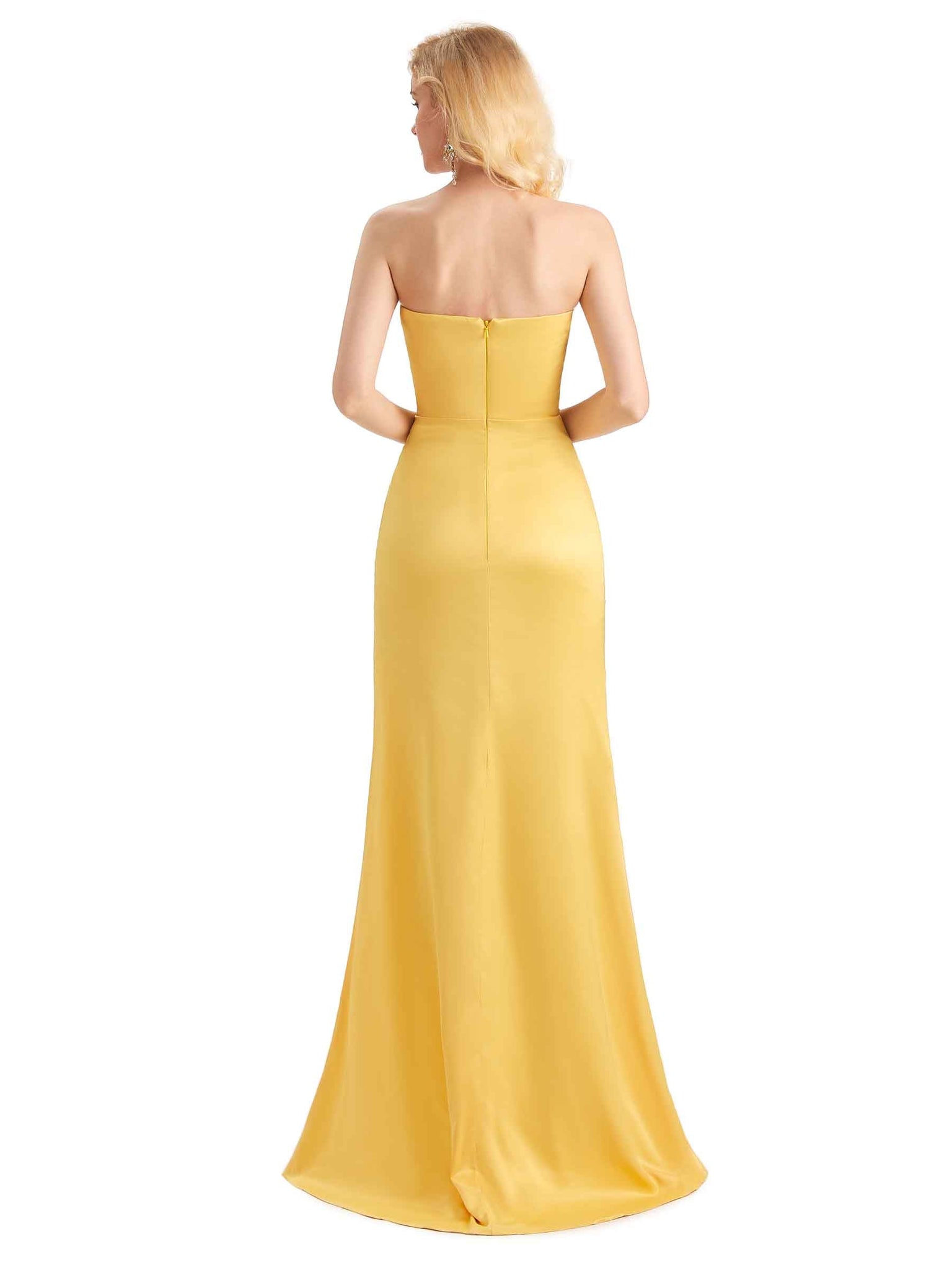 Unique Soft Satin Side Slit Off Shoulder Floor Length Long Mermaid Maid of Honor Dresses - ChicSew – ChicSew