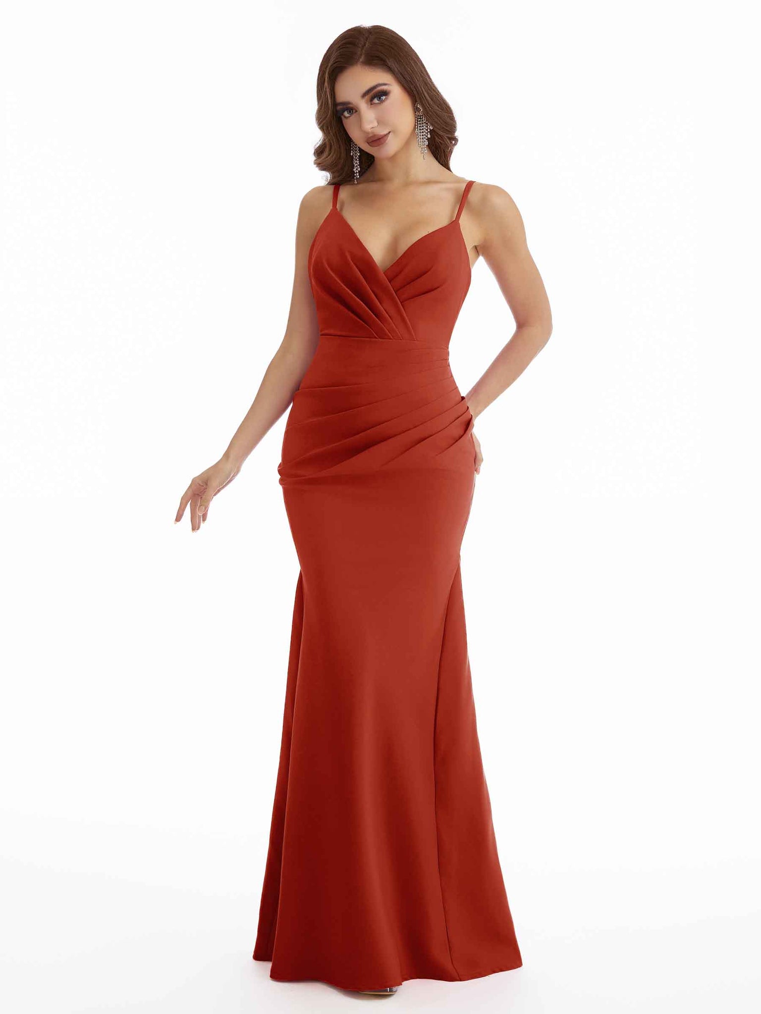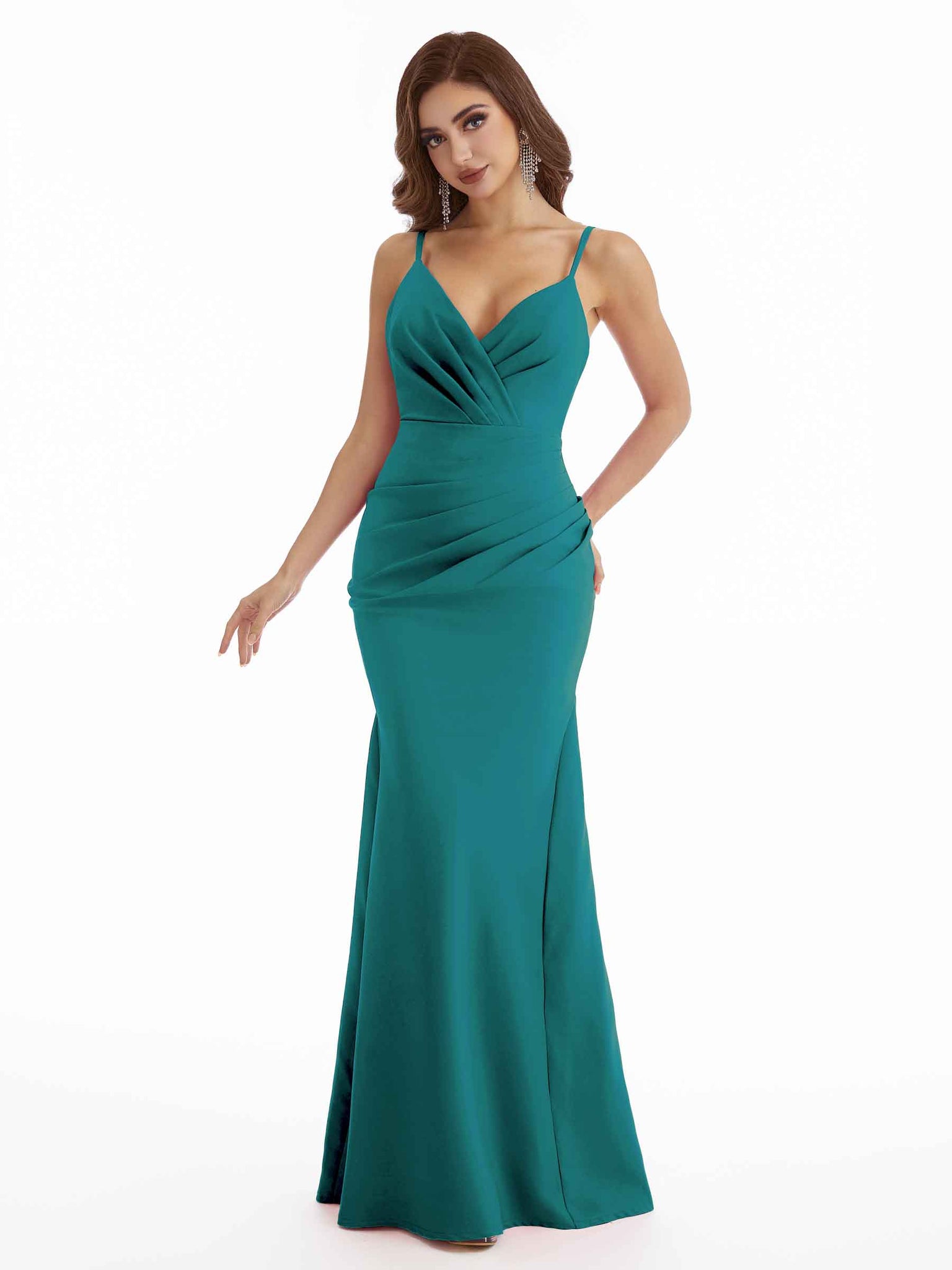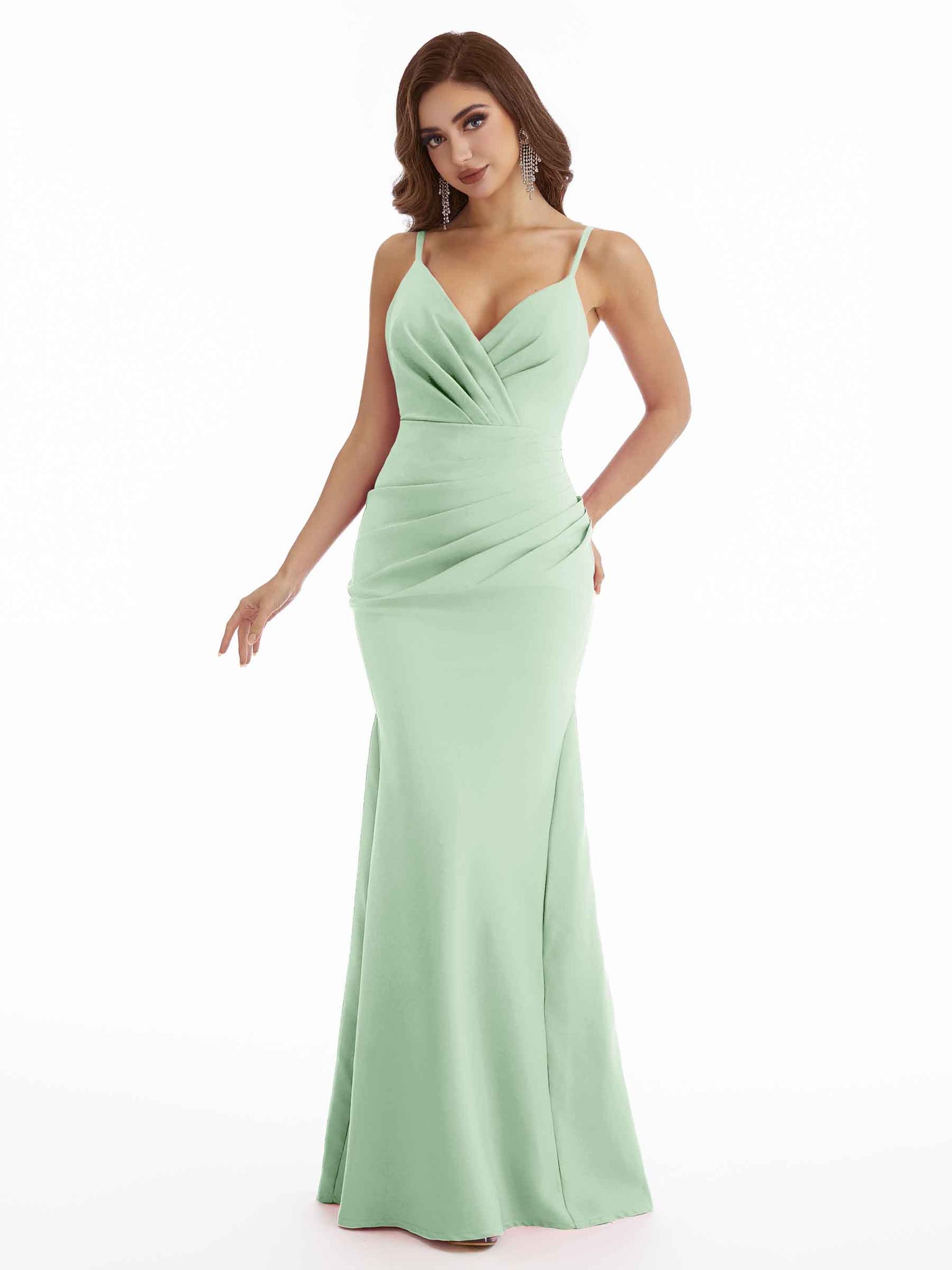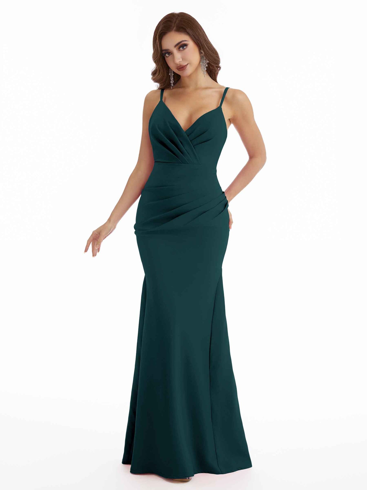 V-Neck Sexy Spaghetti Straps Mermaid Stretch Crepe Floor Length Bridesmaid Dresses