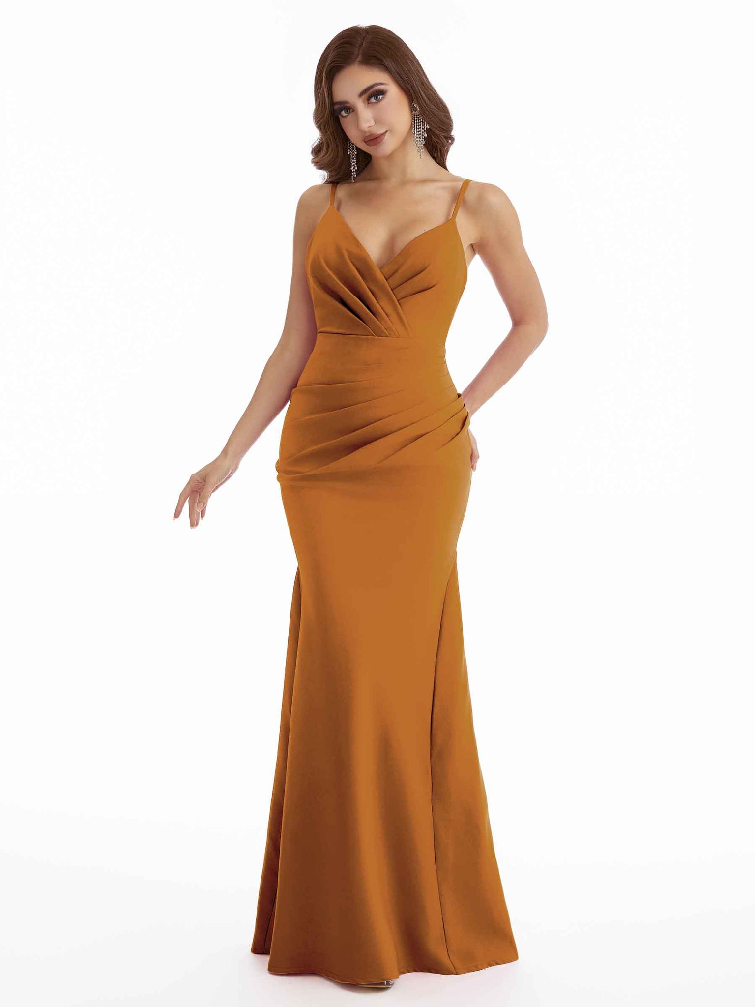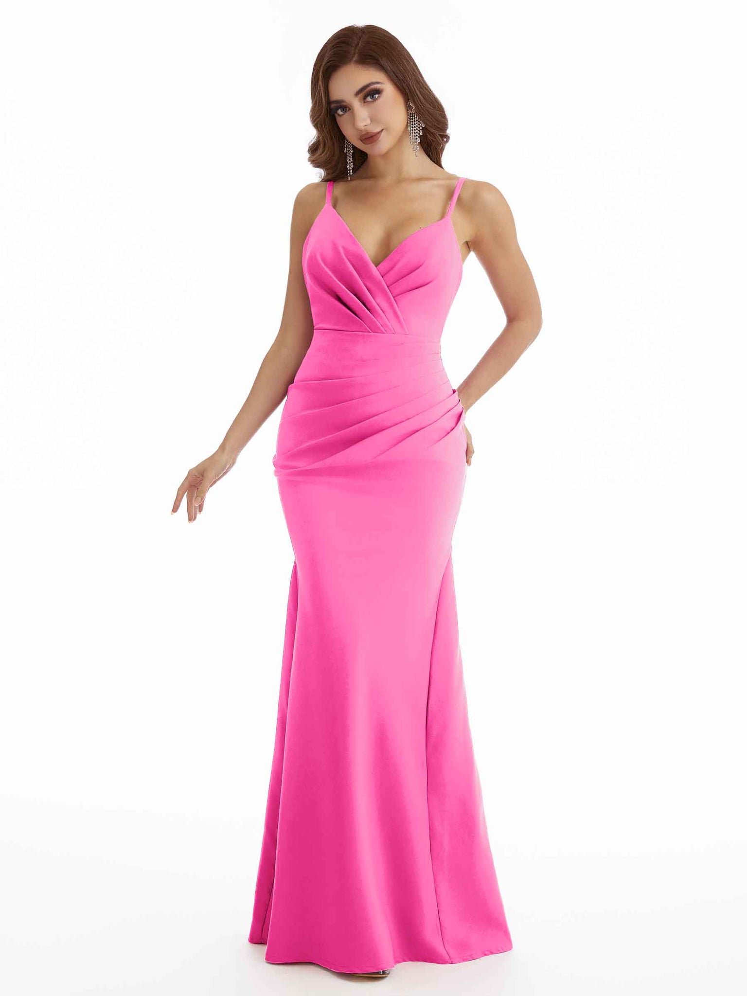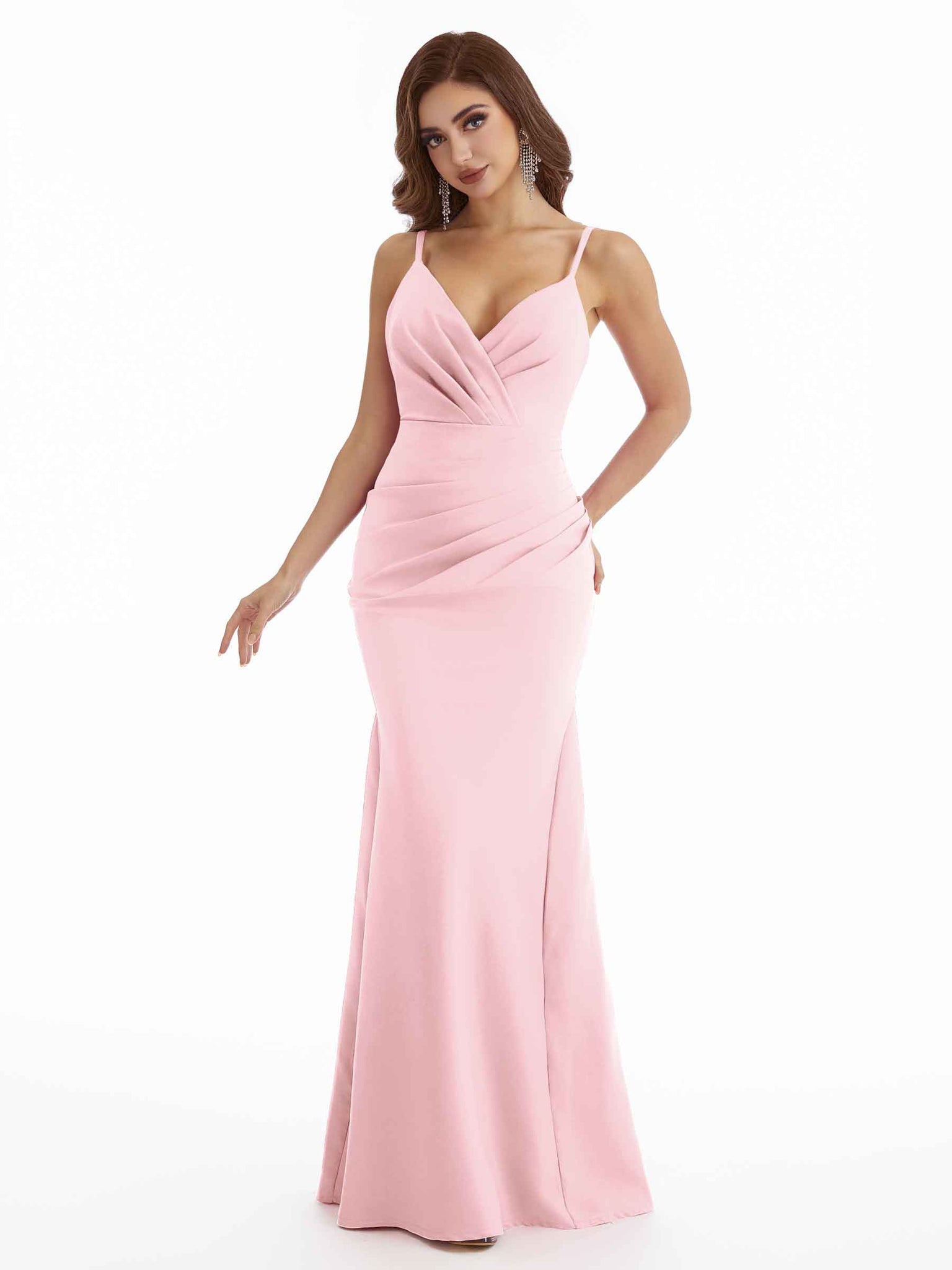 V-Neck Sexy Spaghetti Straps Mermaid Stretch Crepe Floor Length Bridesmaid Dresses