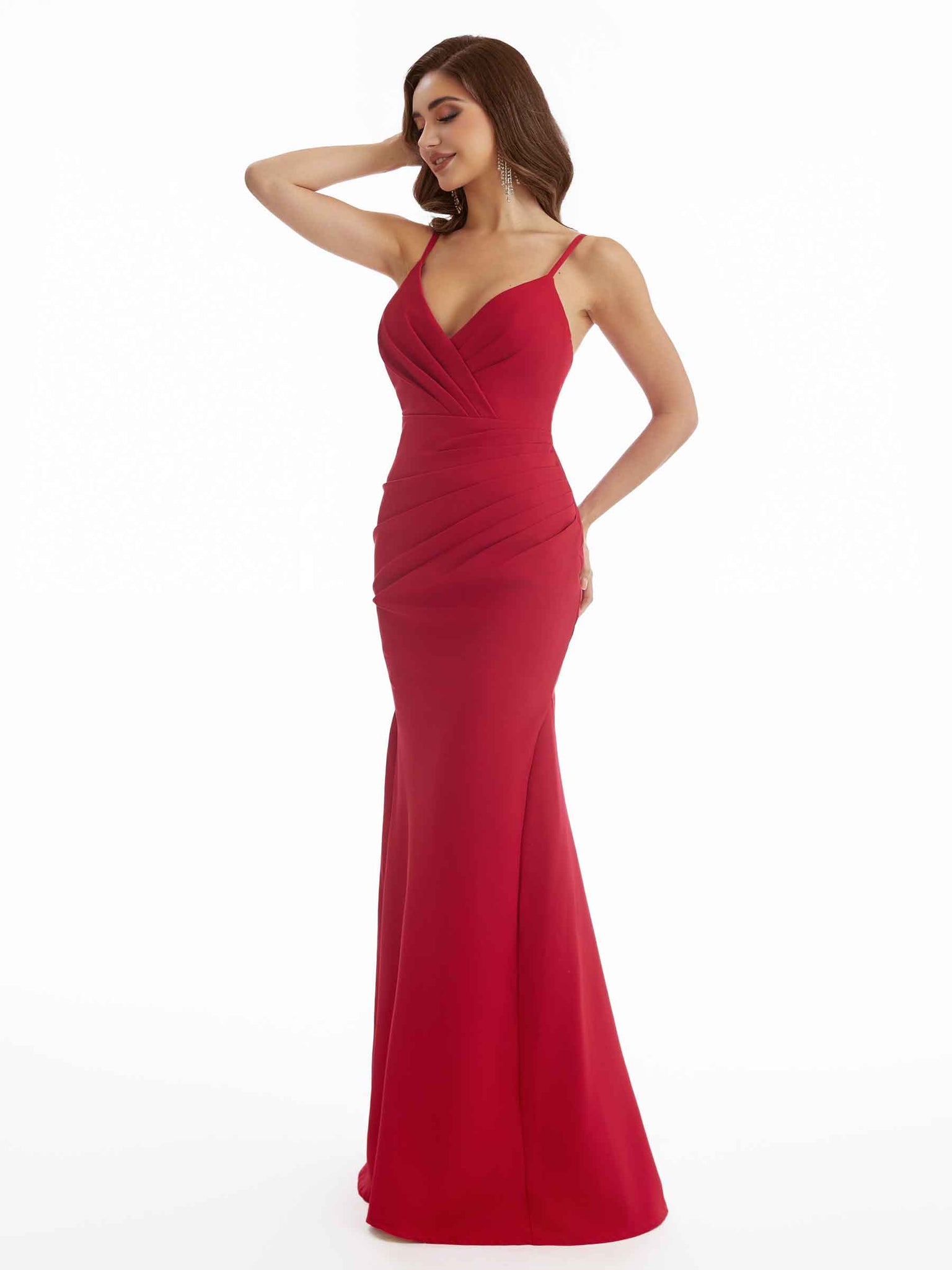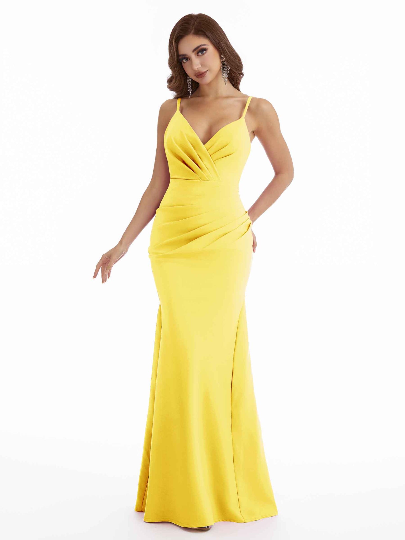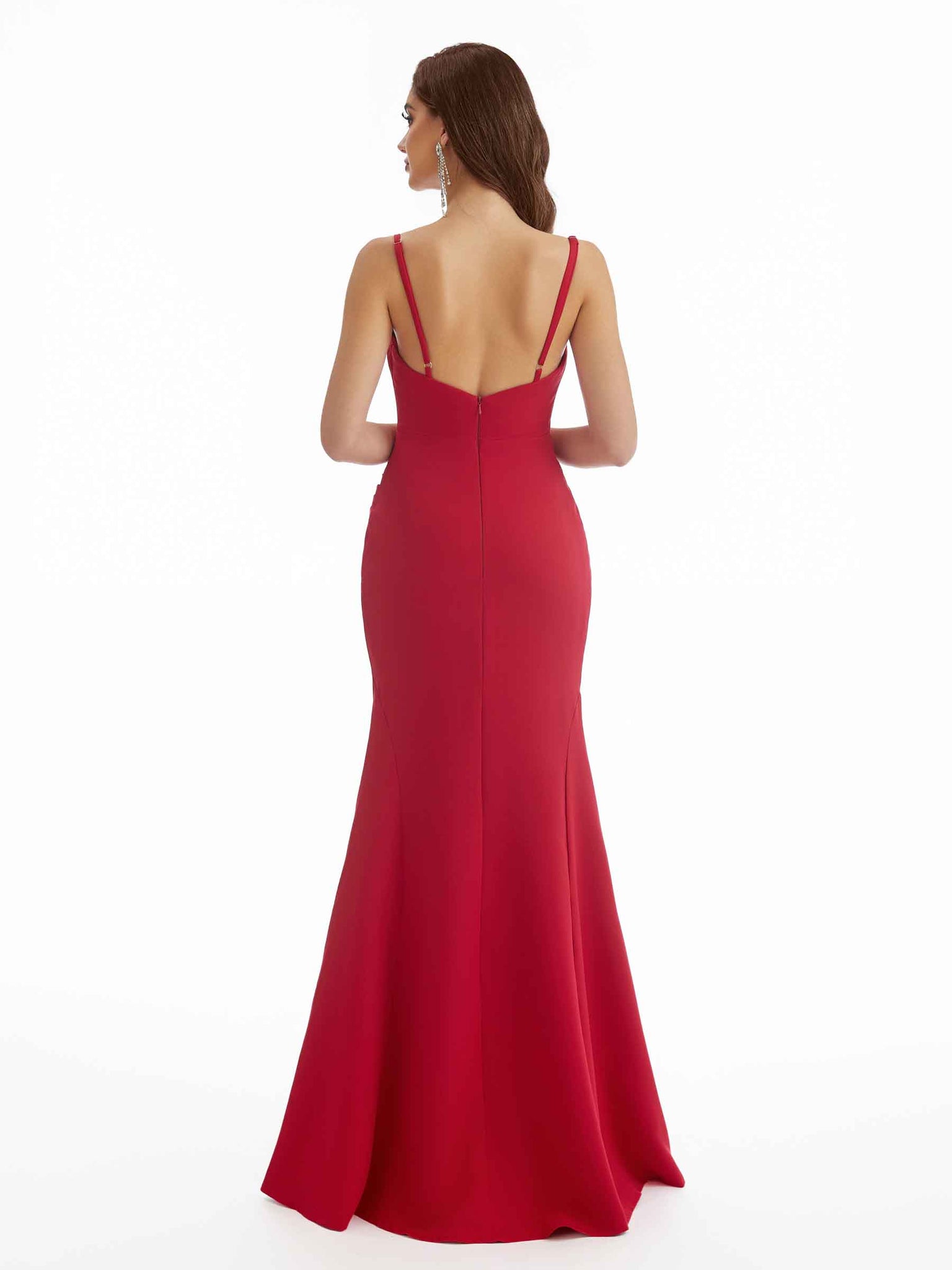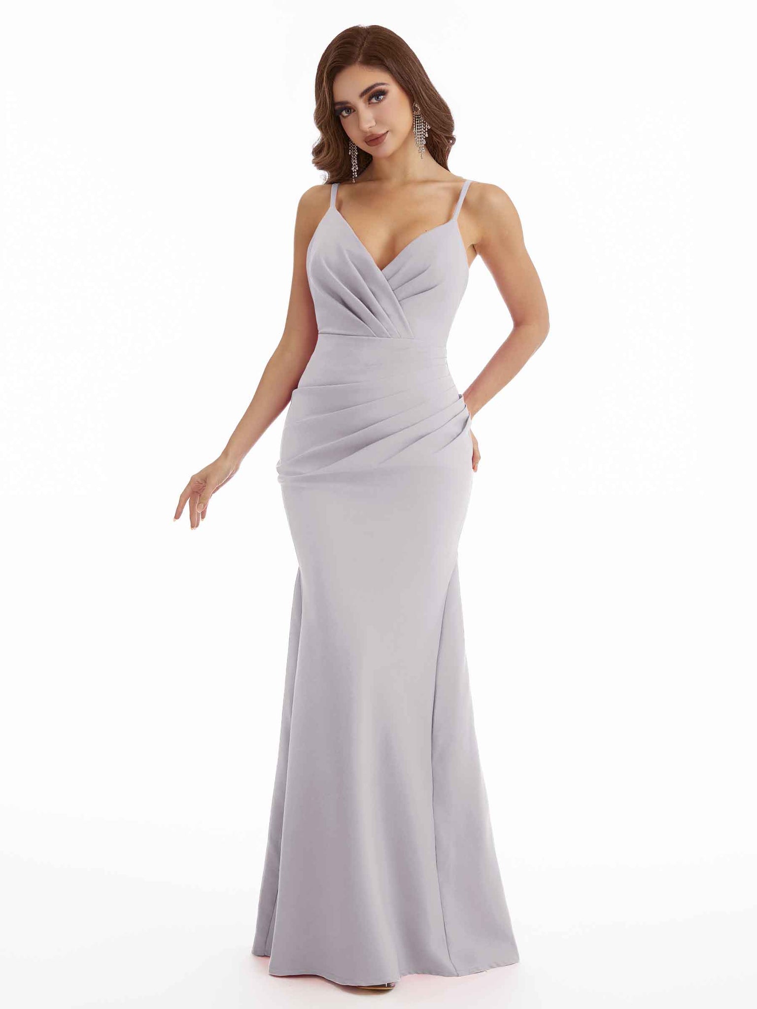 V-Neck Sexy Spaghetti Straps Mermaid Stretch Crepe Floor Length Bridesmaid Dresses