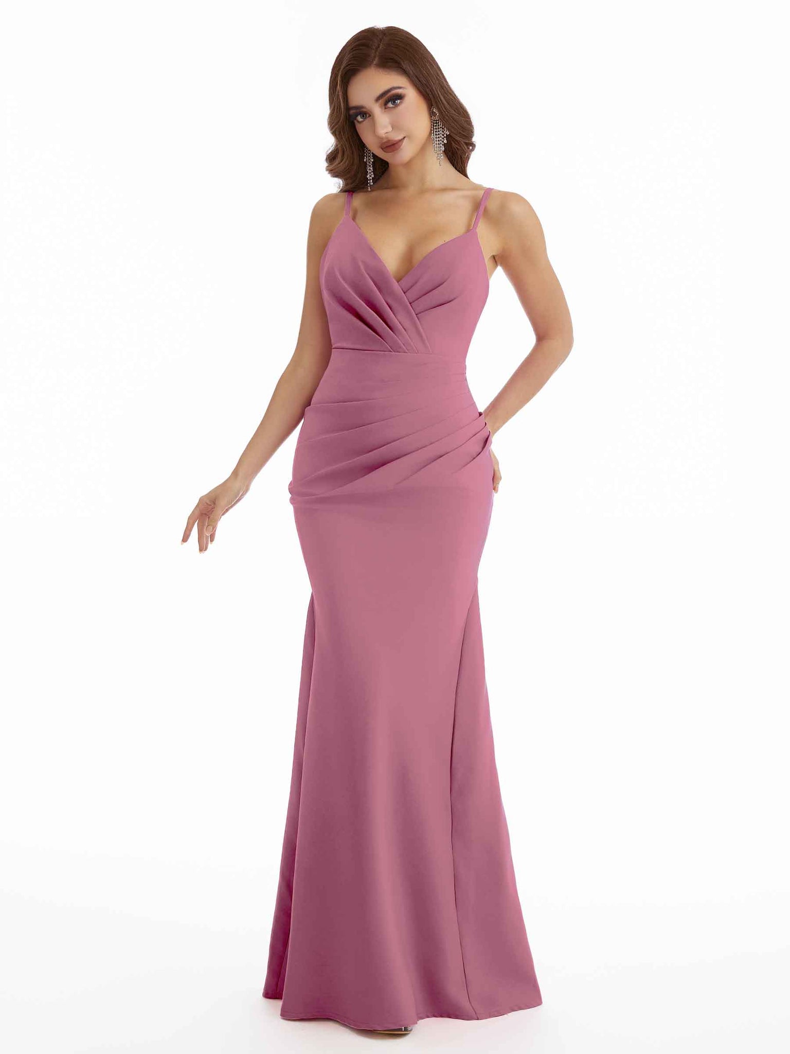 V-Neck Sexy Spaghetti Straps Mermaid Stretch Crepe Floor Length Bridesmaid Dresses - ChicSew – ChicSew