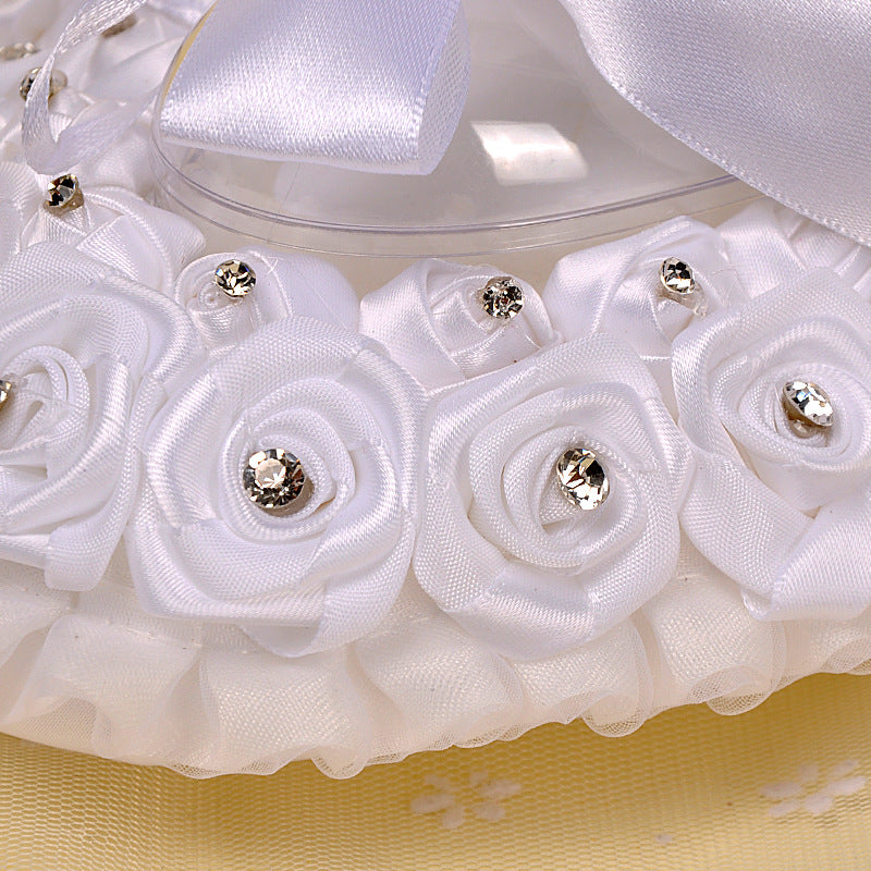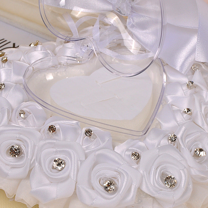 White Wedding Ring Pillow For Bride And Groom, Lace Ring Pillow Holder, JZH-5793