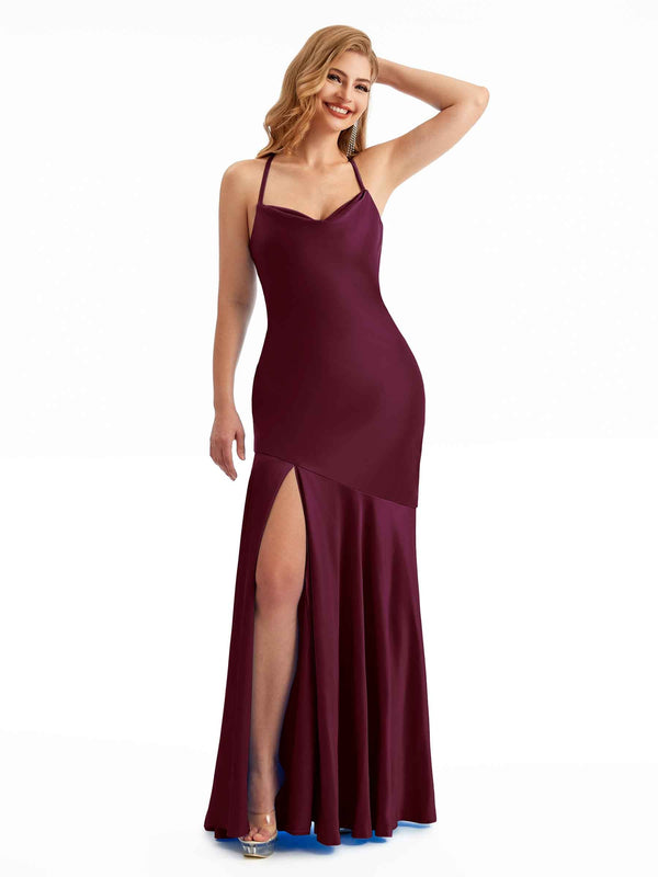 Winter Back Criss-Cross Satin Mermaid Bridesmaid Dresses $108.99