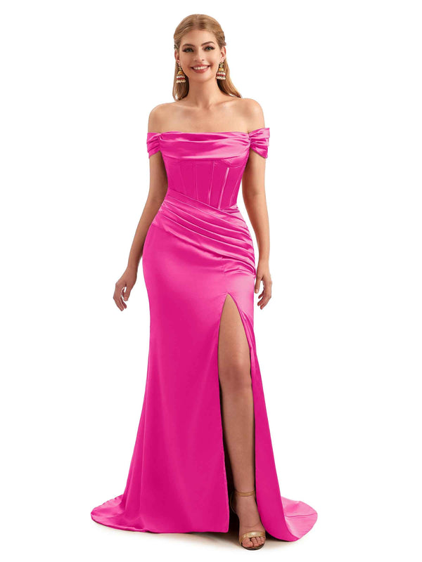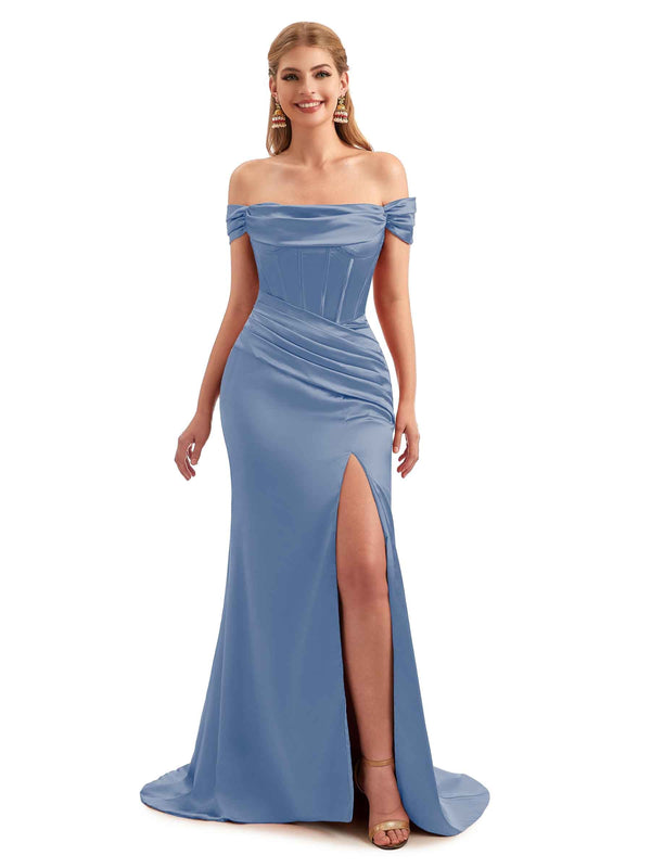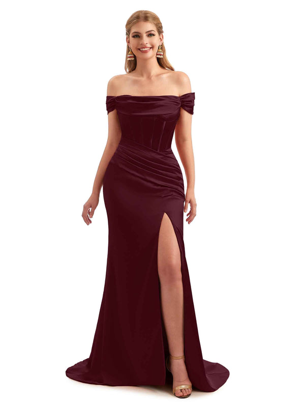 Winter Long Off The Shoulder Satin Bridesmaid Dresses - ChicSew – ChicSew