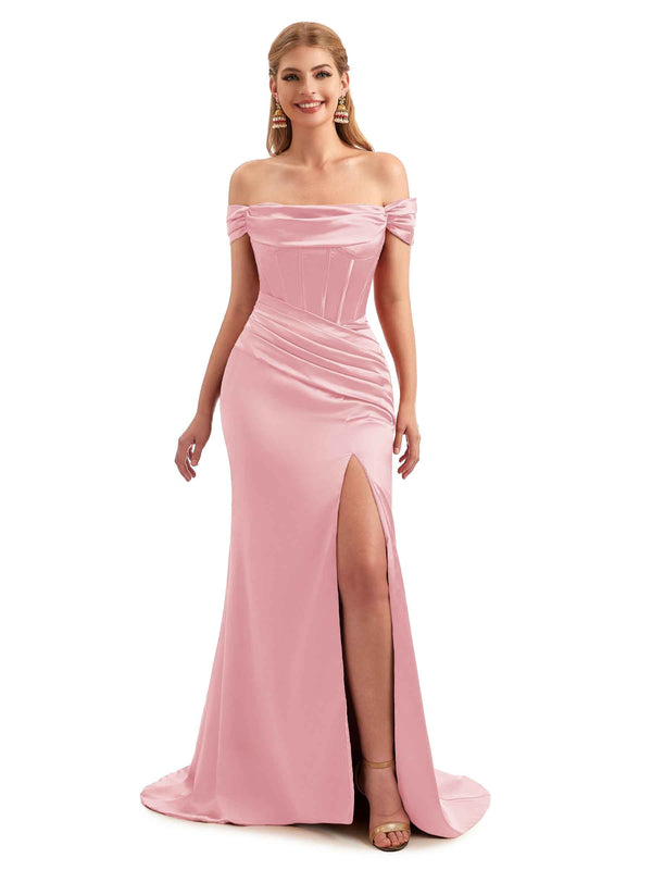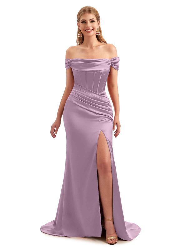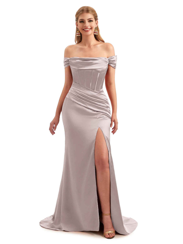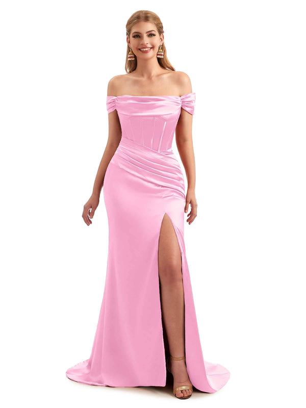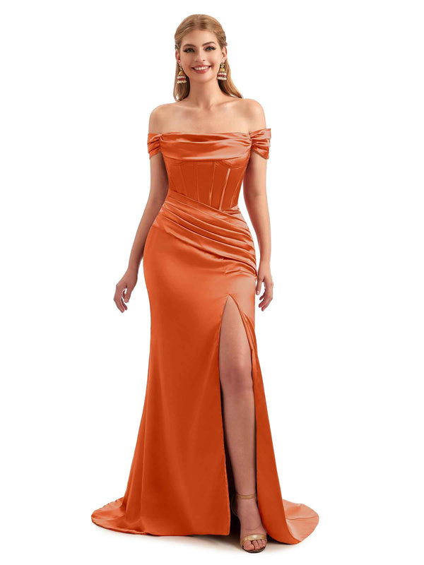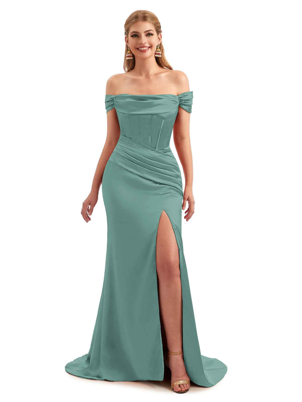Winter Long Off The Shoulder Satin Bridesmaid Dresses $108.99