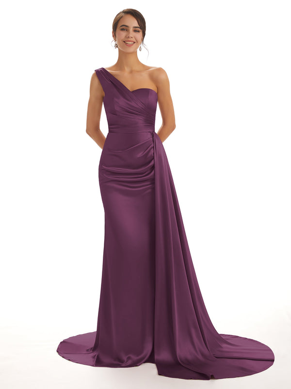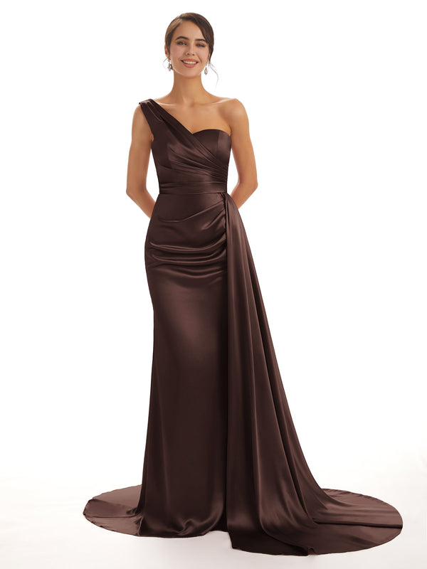 Winter One Shoulder Satin Long Bridesmaid Dresses - ChicSew – ChicSew