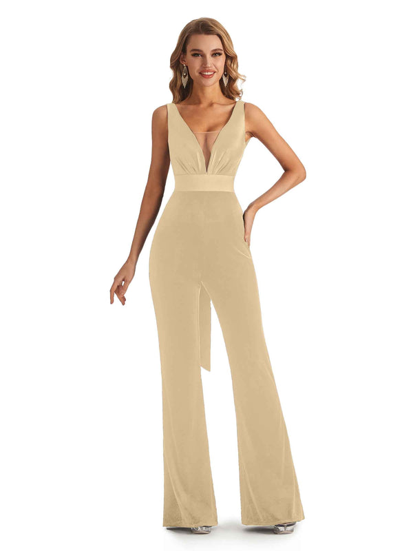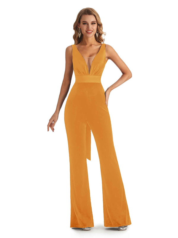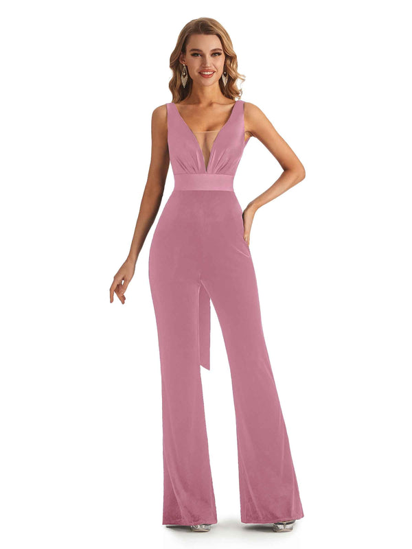 Winter Open Back Velvet Jumpsuit Bridesmaid Dresses