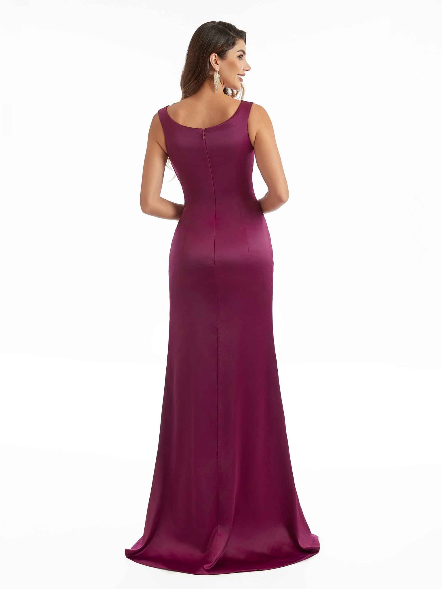 Women Scoop Sleeveless Side Split Long Satin Chic Formal Bridesmaid Dresses Online - Chicsew – ChicSew